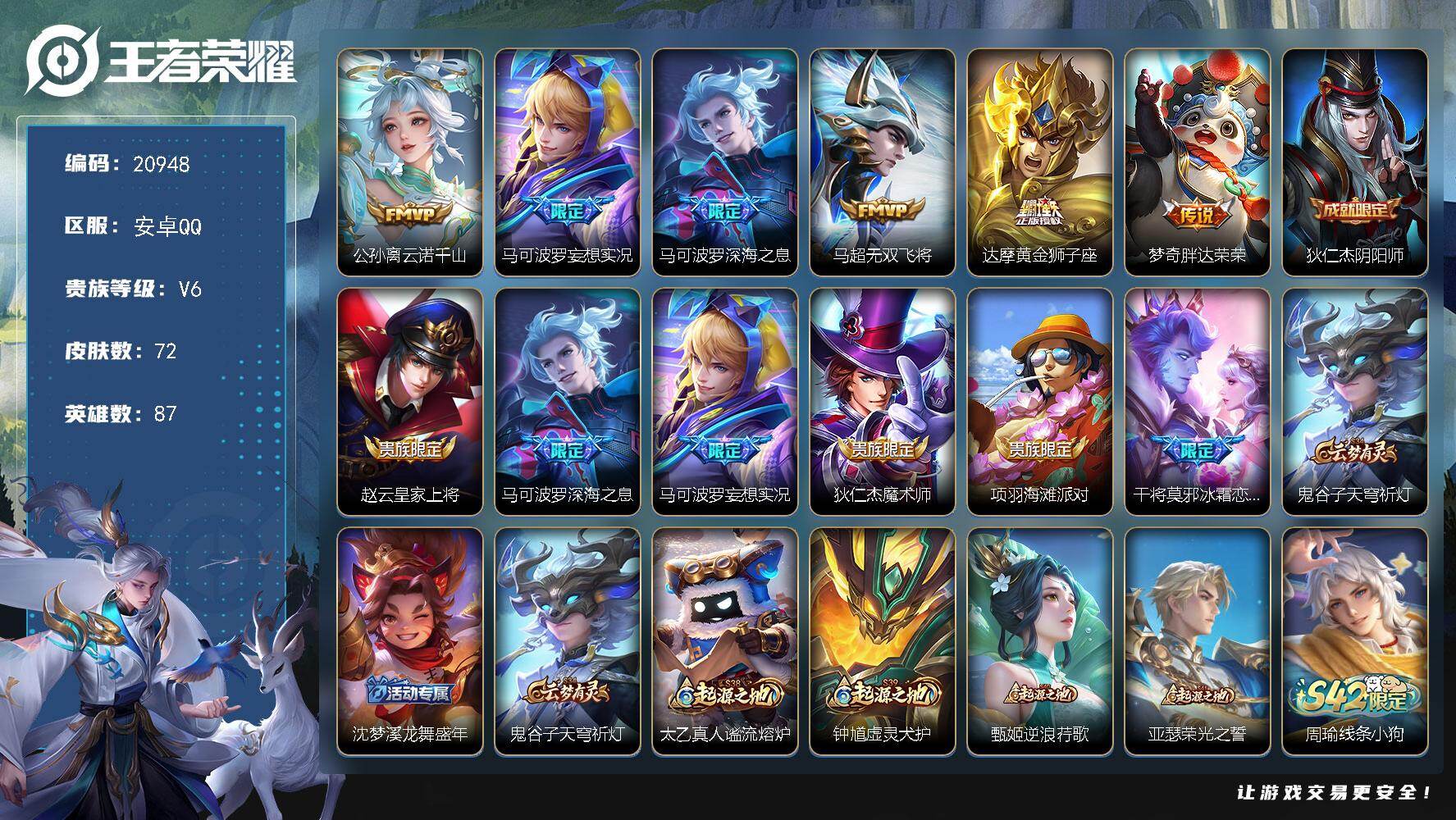 1920739 王者荣耀账号 安卓Q-V6-永恒钻石II段位-107英雄-10