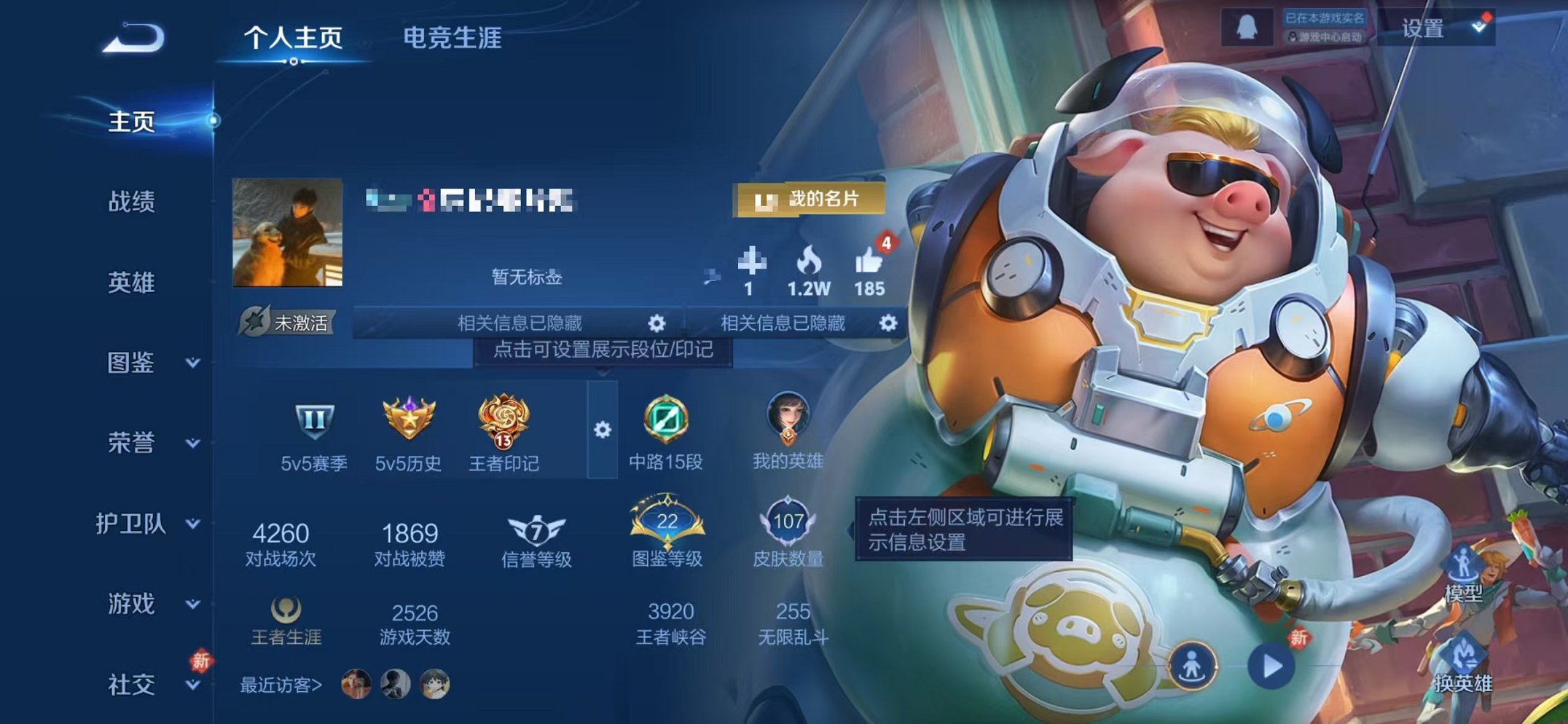 实名: 可修改 贵族等级: V4 英雄数: 87 皮肤数: 58 珍品传说:
