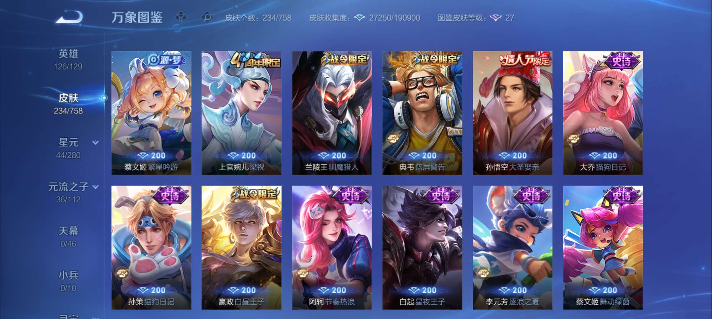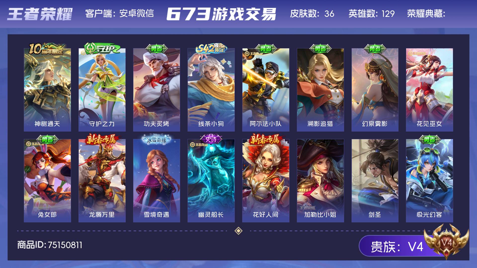 V4 皮肤36 英雄129 永恒钻石 传说1 其他皮肤41