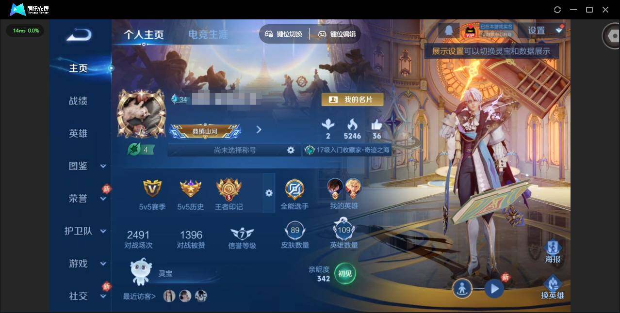 实名: 可修改 贵族等级: V6 英雄数: 109 皮肤数: 89 荣耀水晶:
