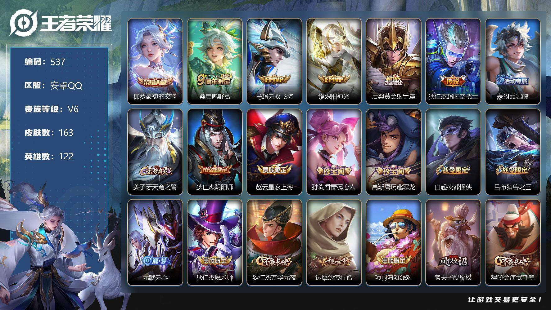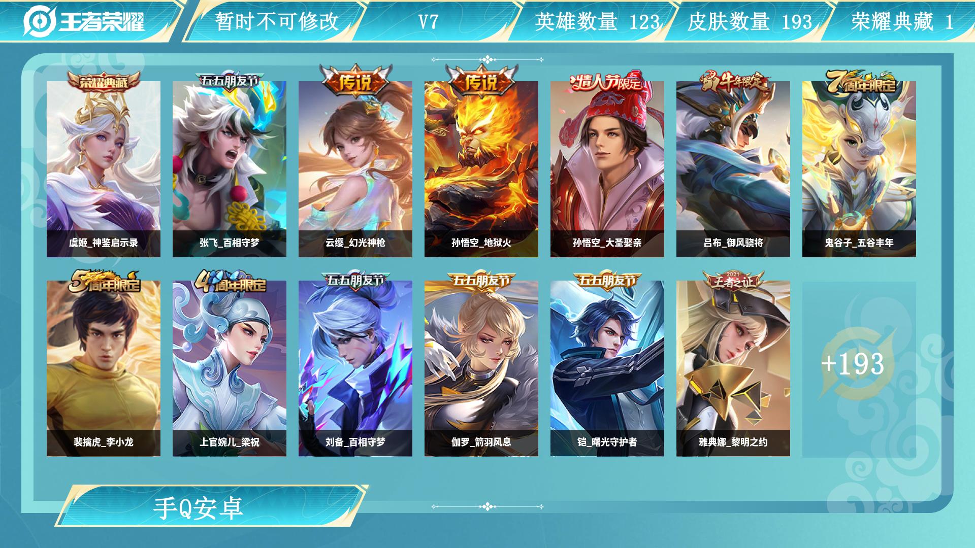 V6--122英雄-163皮肤-1典藏-5传说-37史诗 cc8311【荣耀