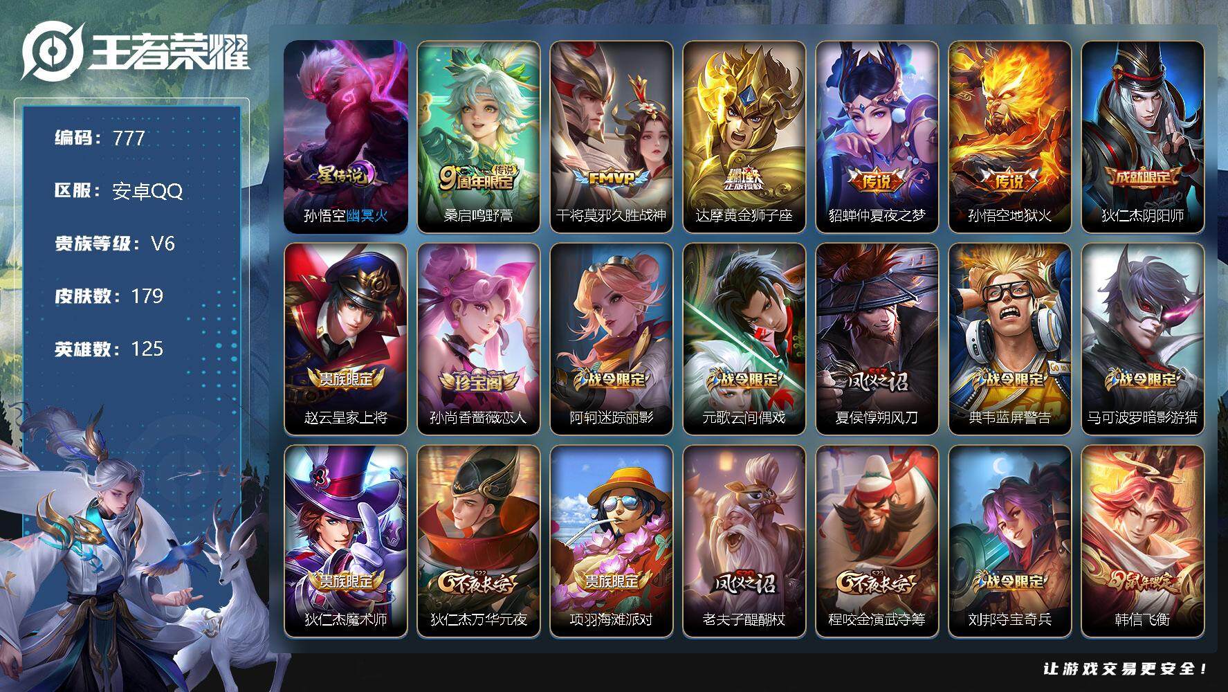 【206皮肤1水晶3星元5传说可秒换绑】安卓QQ-126英