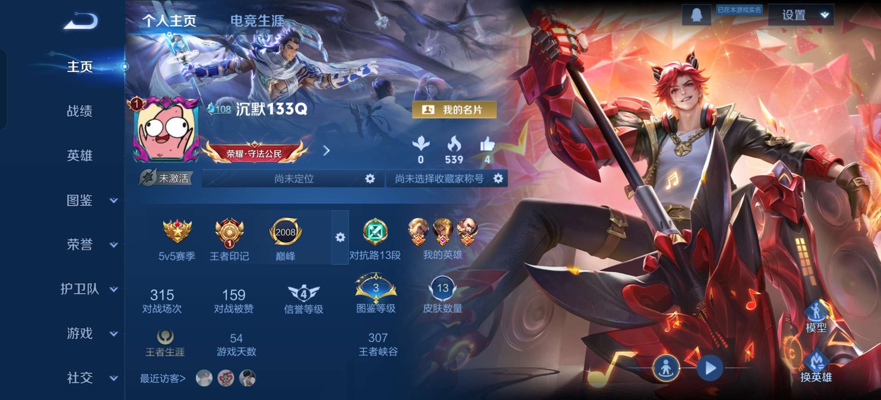 V6 皮肤104 英雄119 至尊星耀 传说3 其他皮肤107