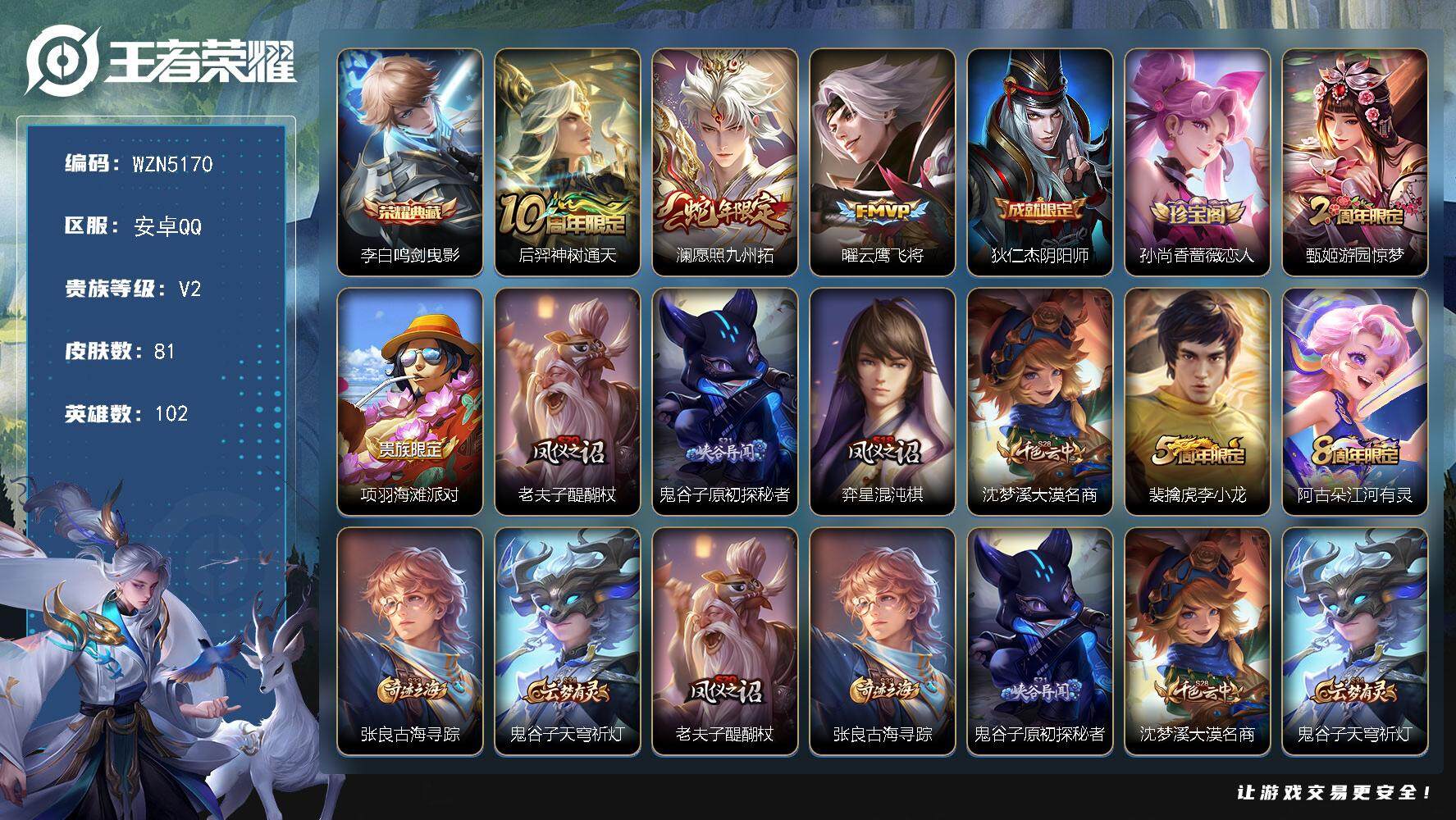 贵族2/皮肤81/典藏1/传说3/史诗18/英雄102