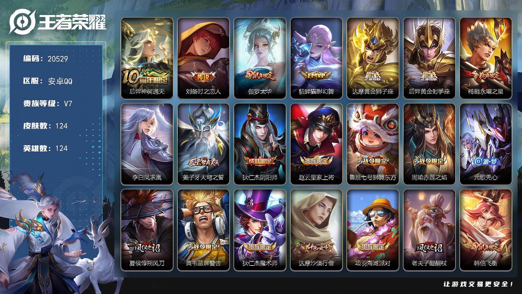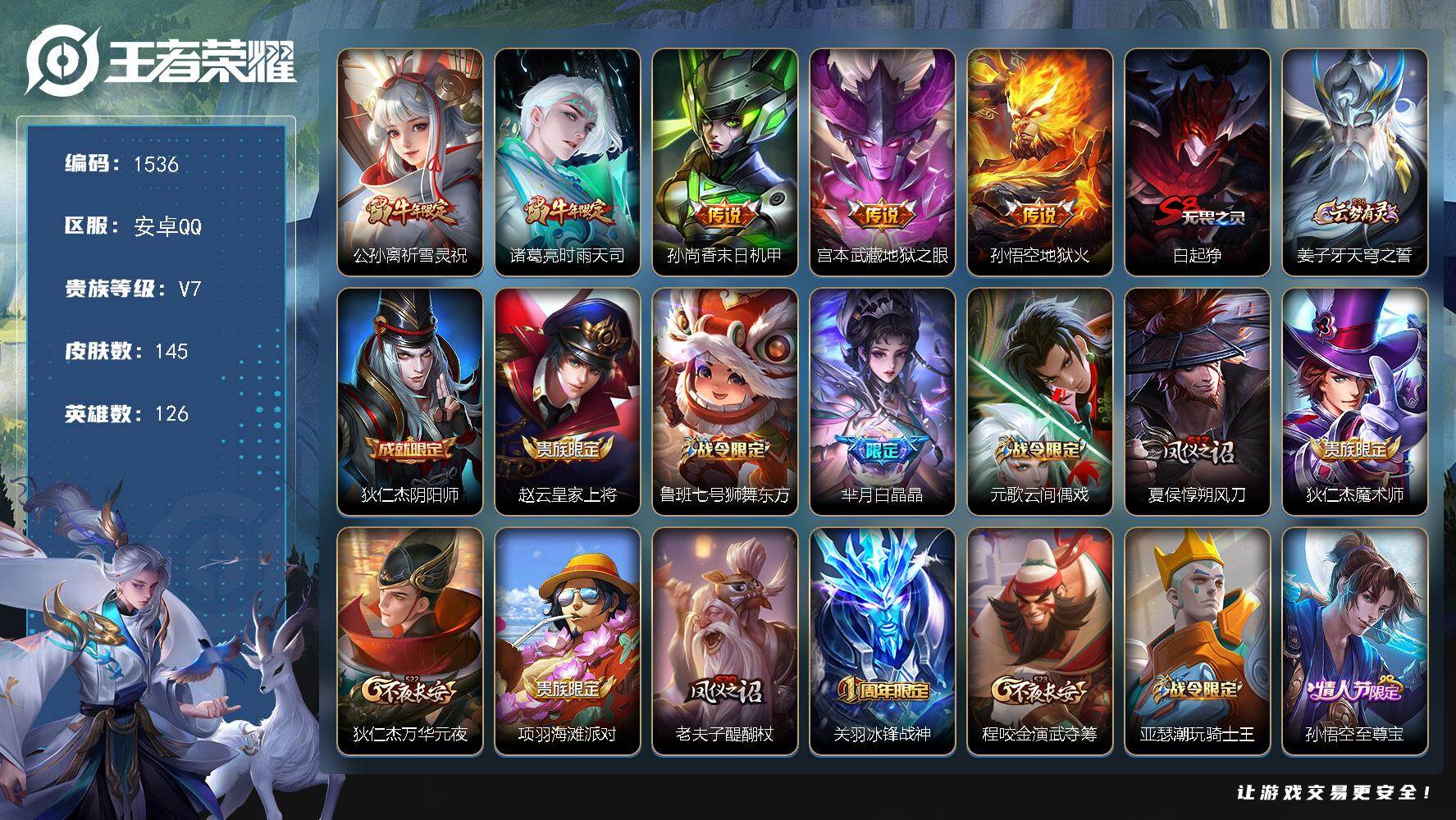 安卓QQ 皮肤188 英雄121 典藏1 传说3 其他皮肤71 荣耀黄金-