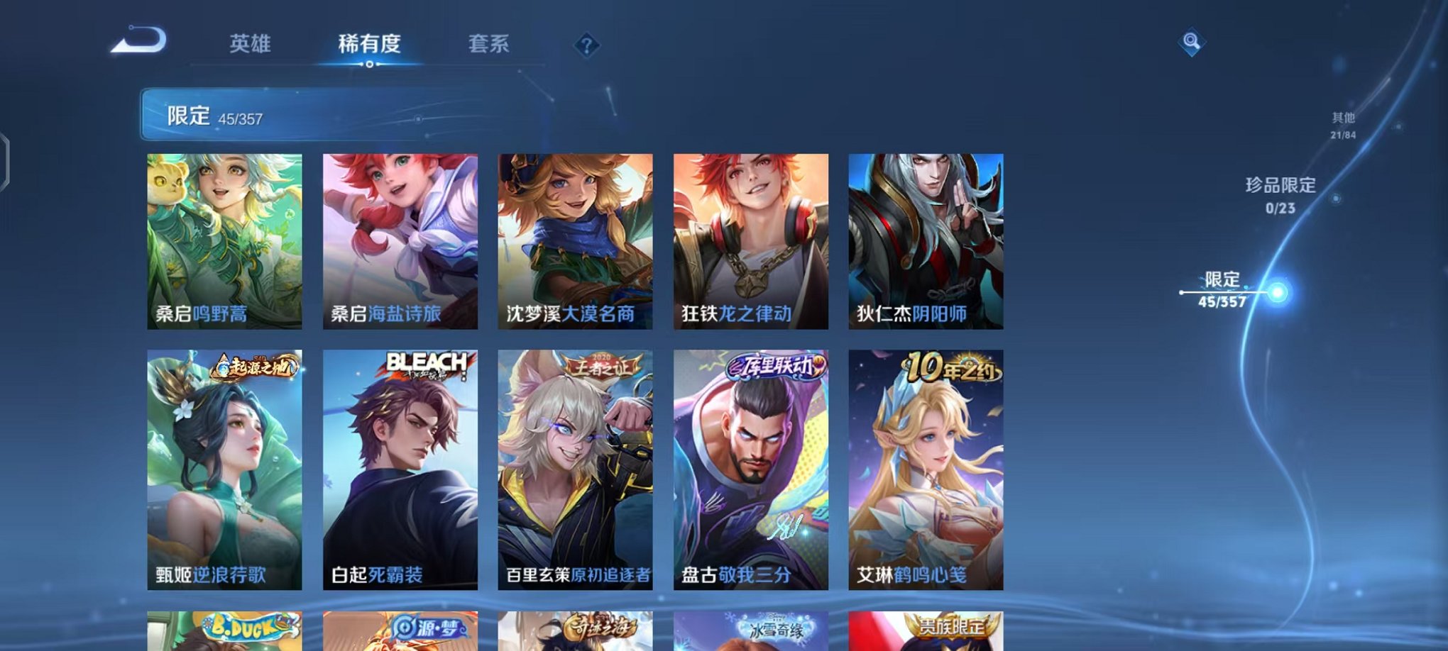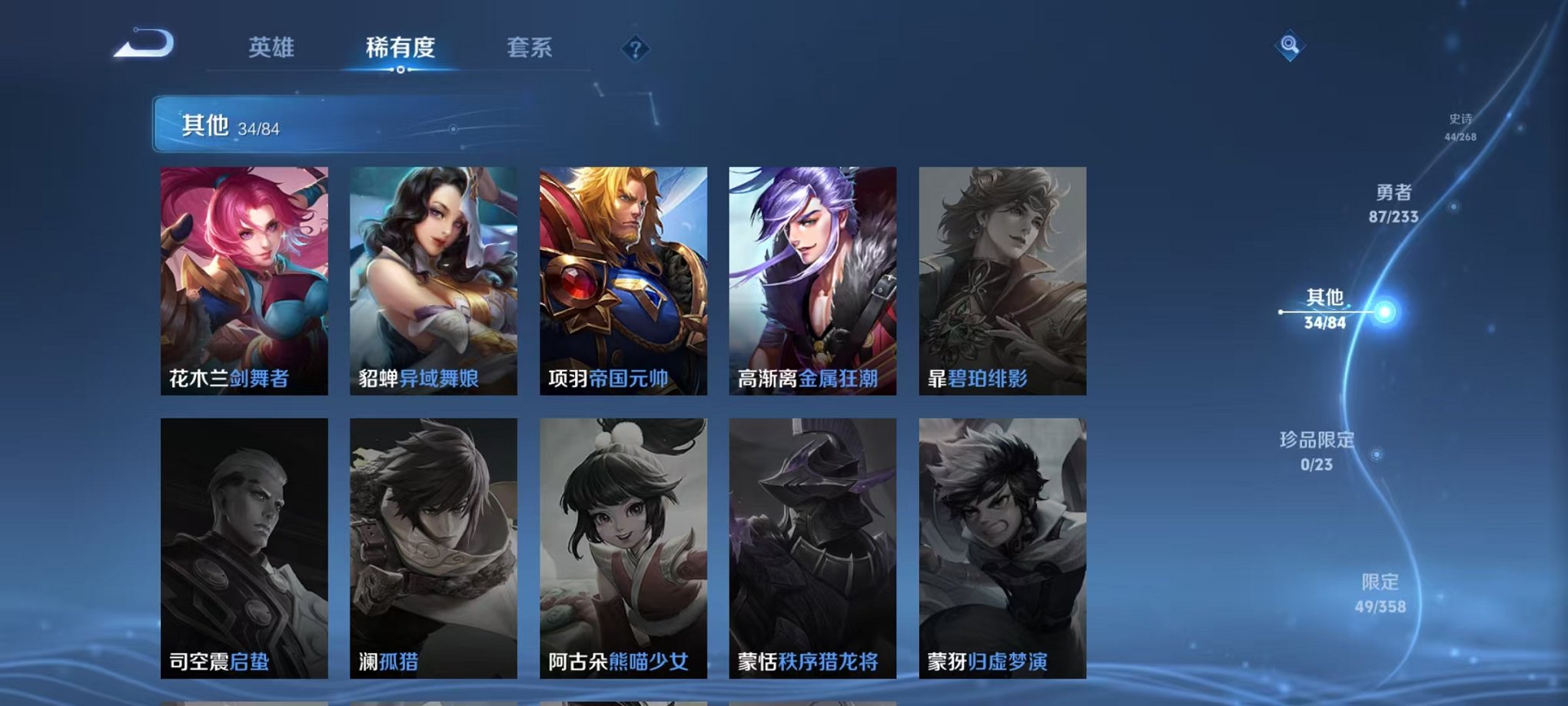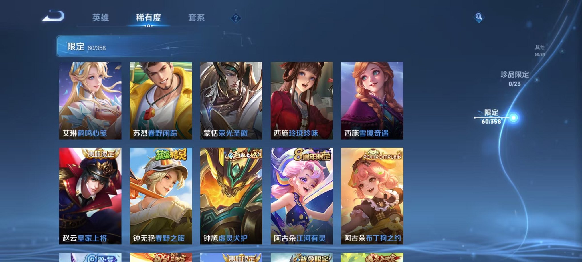 皮肤209 英雄125 荣耀黄金 荣耀典藏1 传说1 其他皮肤63-