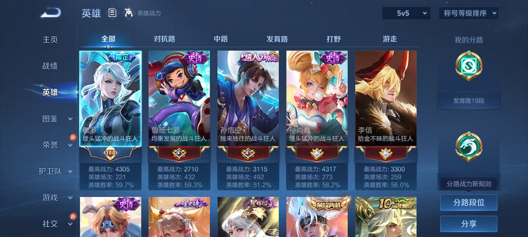 贵族2/皮肤81/典藏1/传说3/史诗18/英雄102