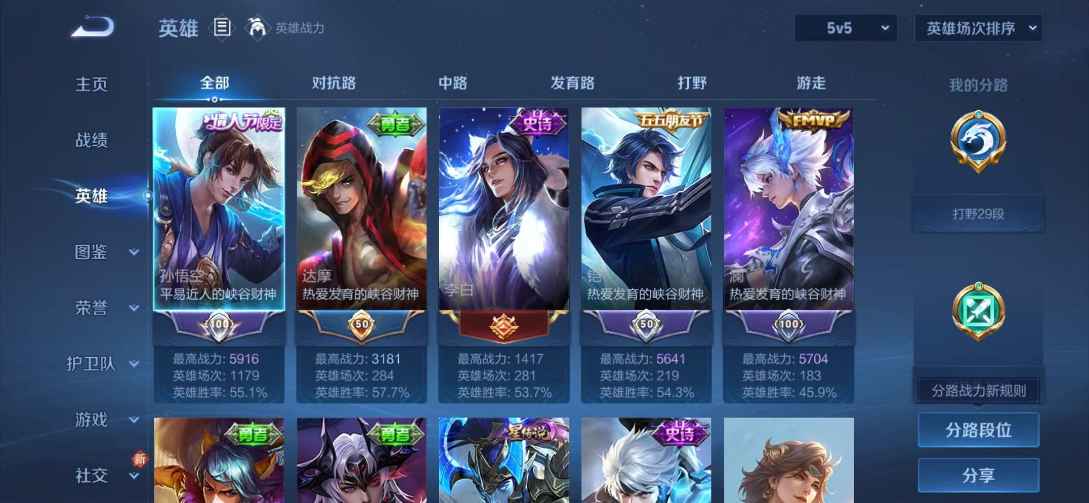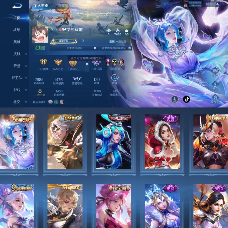 实名: 可修改 贵族等级: V5 英雄数: 123 皮肤数: 120 荣耀水晶