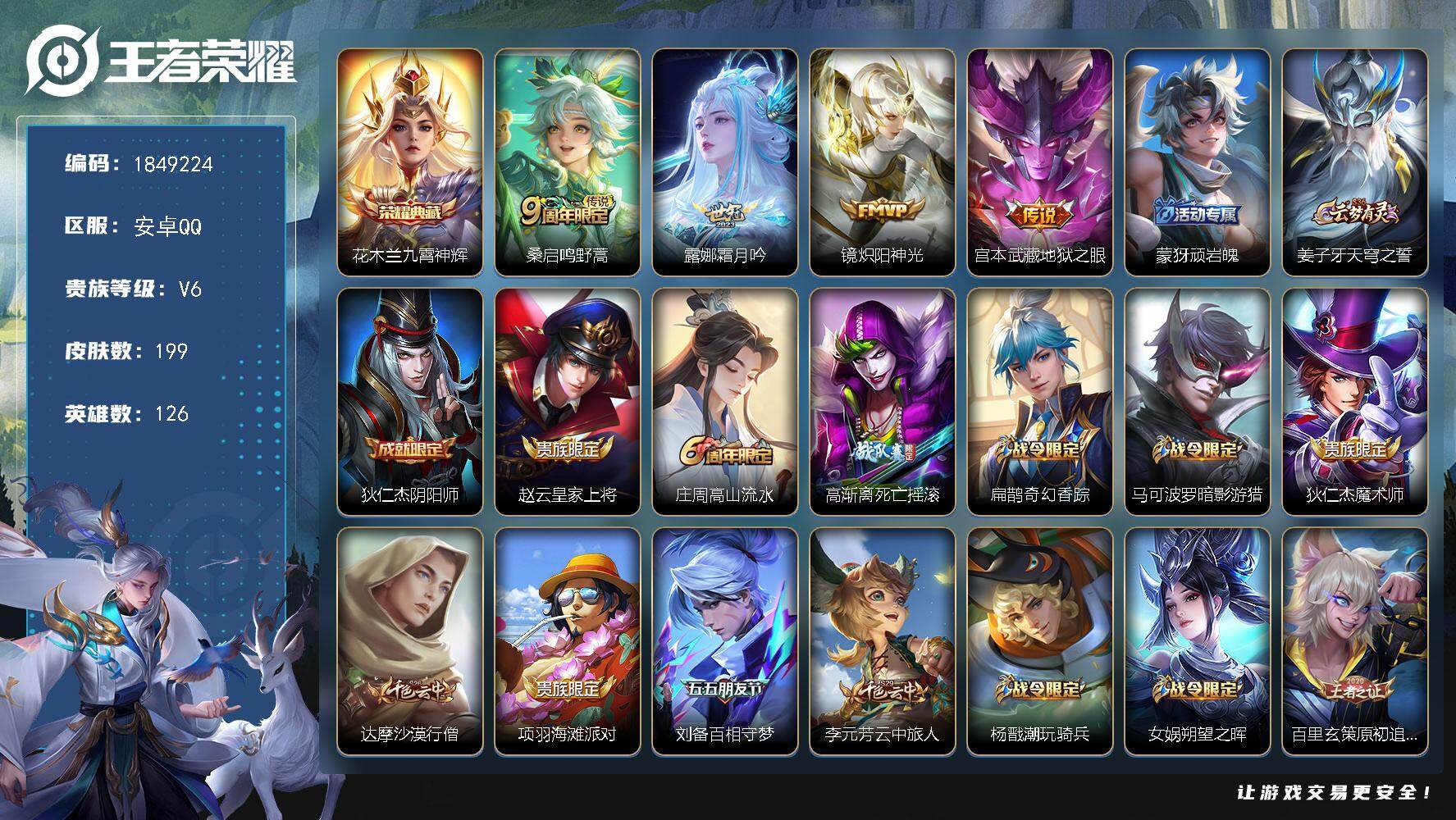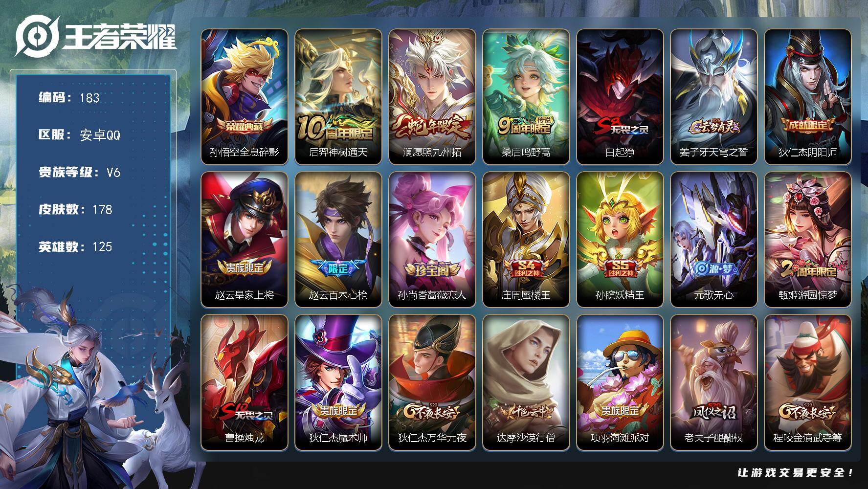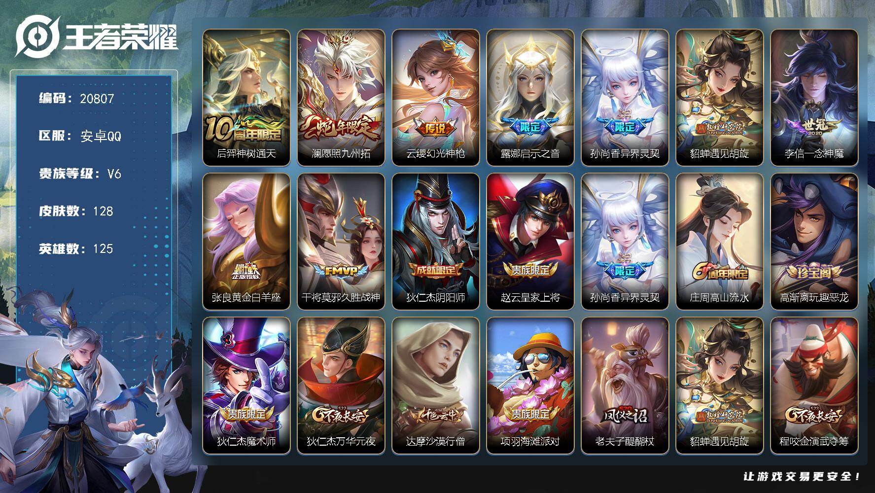 【W4448】安卓Q-有二次-贵6-125英雄-260皮肤-6传说-81限定-