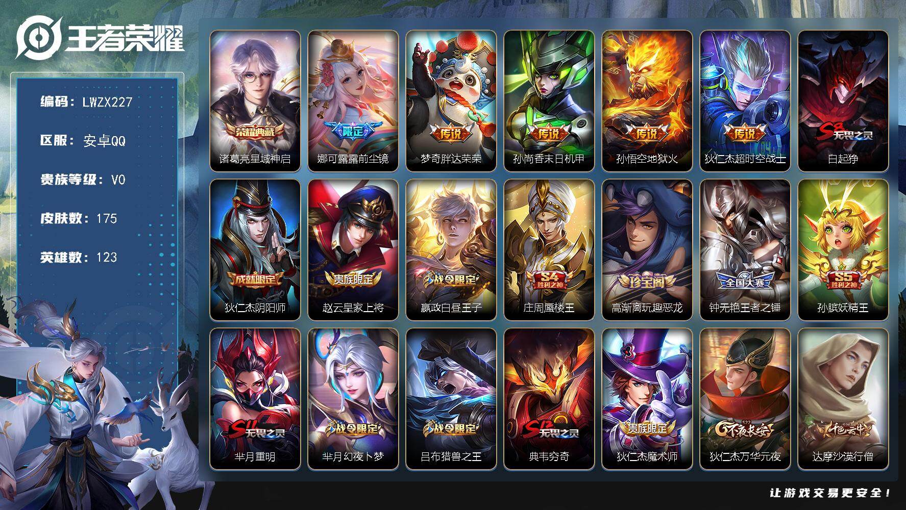 【特价出售/店主推荐】安卓Q-V0-秩序白银I段位-123英雄-175皮肤-1