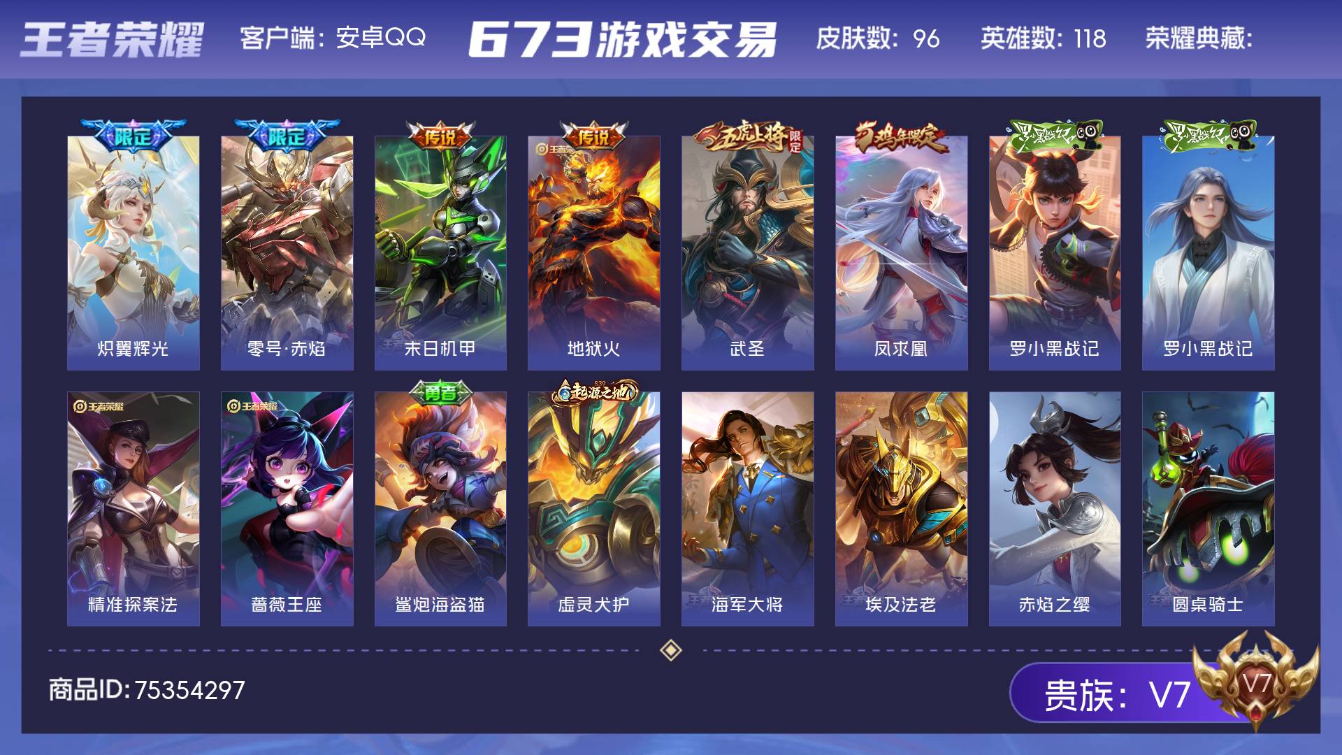 V7 皮肤96 英雄118 尊贵铂金 传说6 其他皮肤95