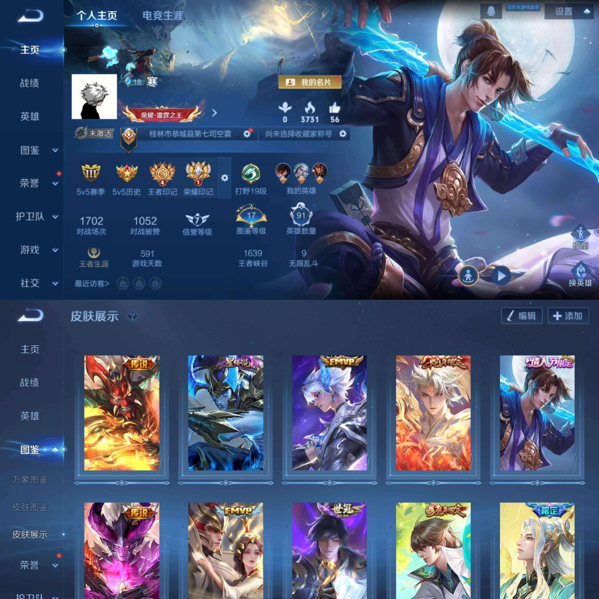 贵族等级: V5 英雄数: 117 皮肤数: 114 荣耀水晶: 弑枪猎影 传