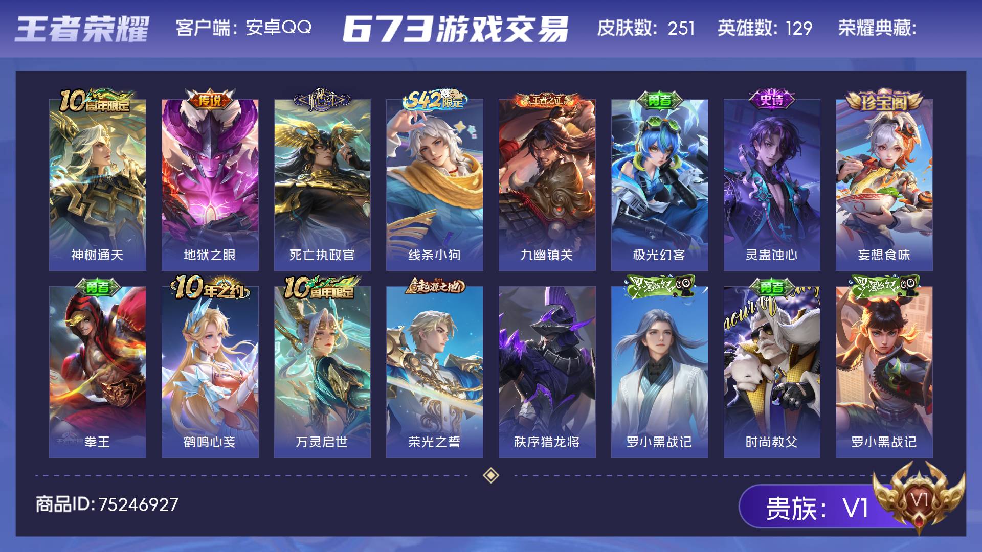 V1 皮肤251 英雄129 至尊星耀 星传说1 传说3 其他皮肤254