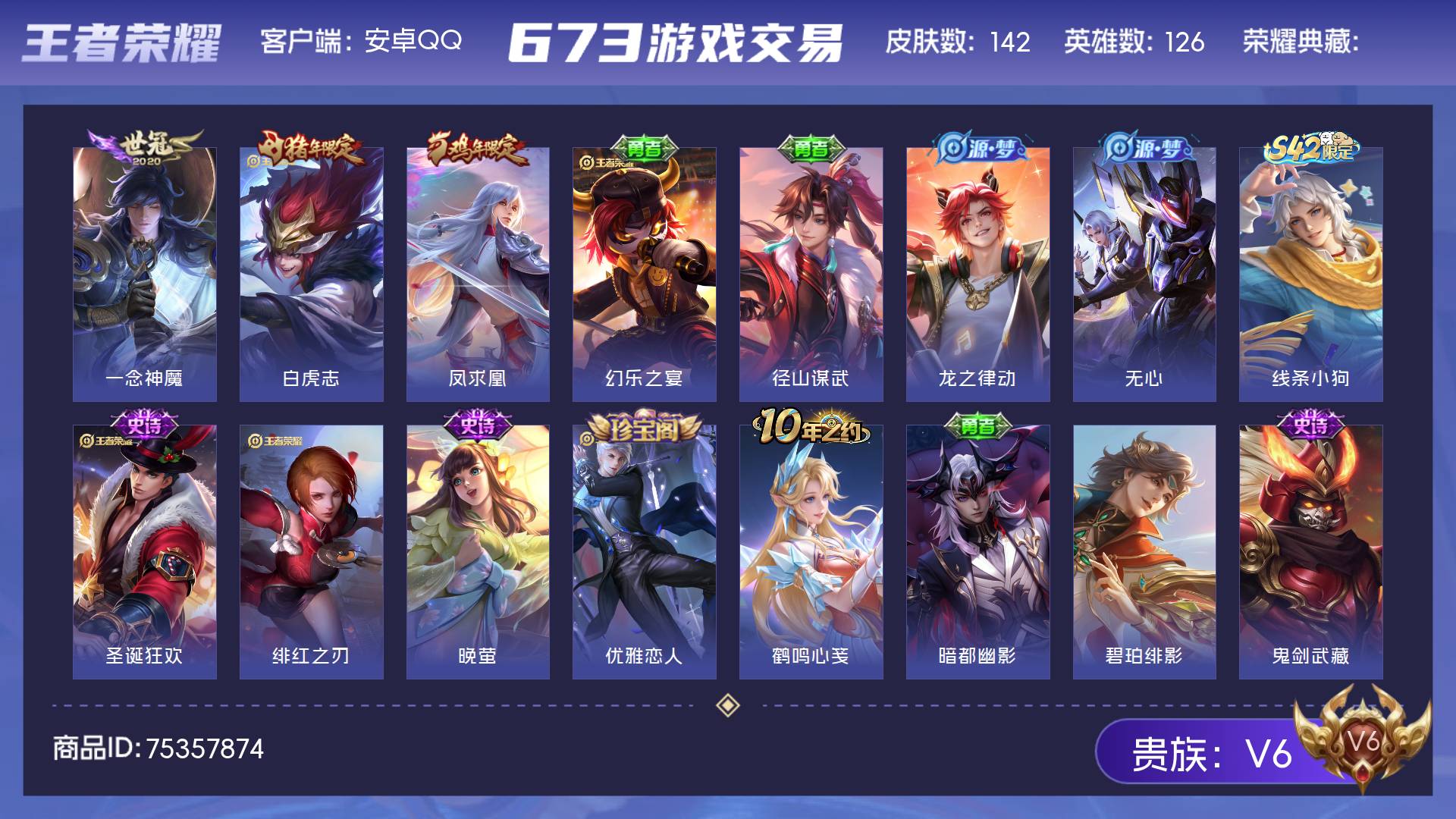 V6 皮肤142 英雄126 非凡王者 传说3 其他皮肤145