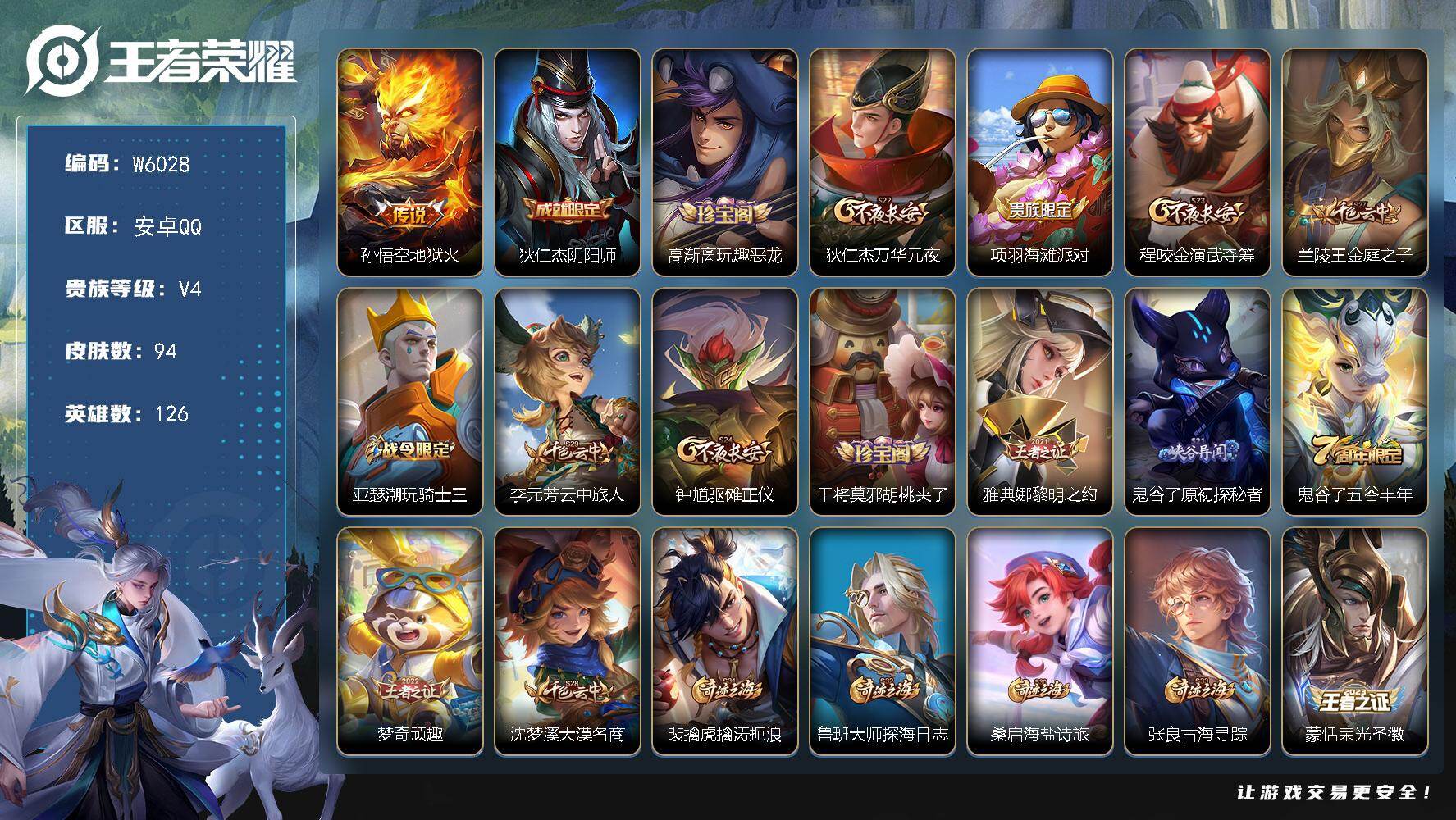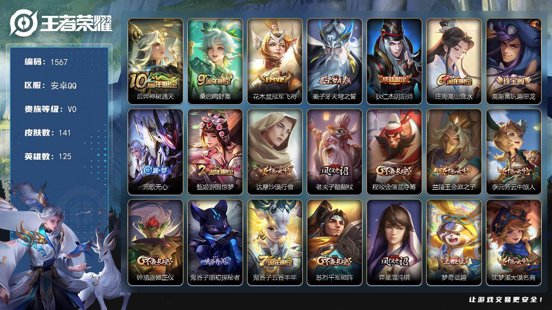 安卓Q-V0-荣耀黄金I段位-125英雄-141皮肤-3传说-34史诗【传说
