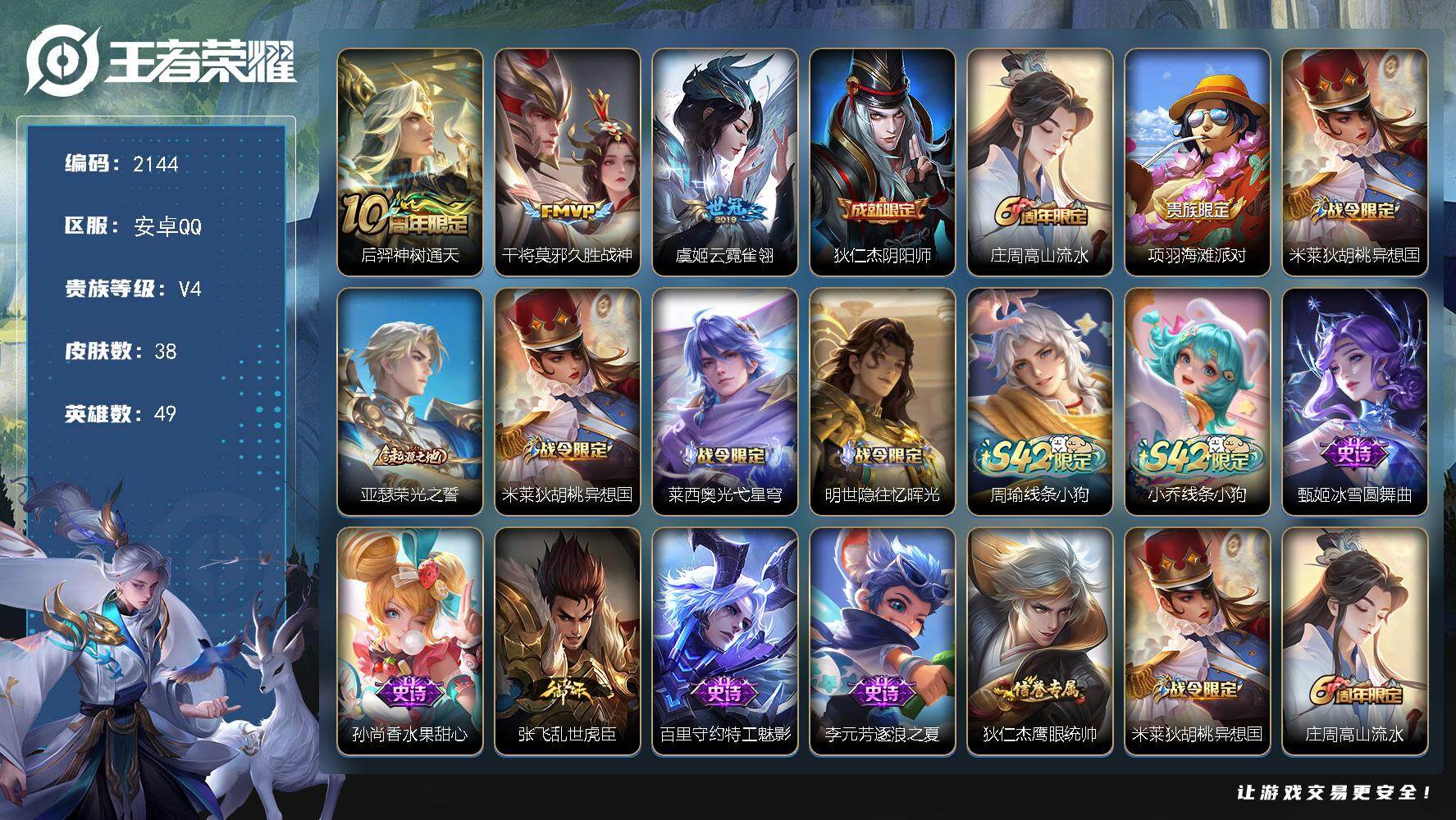 【BL年前清库存·精品3传说小号】安卓Q-V4-最强王者段位-49英雄-38