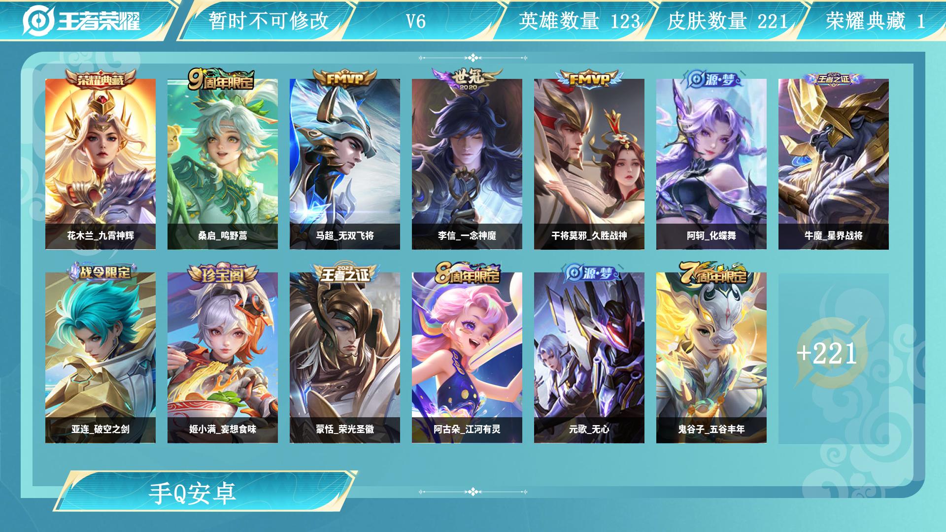 木兰典藏+飞将马超皮肤数量221印记总数12典藏皮肤数量1传