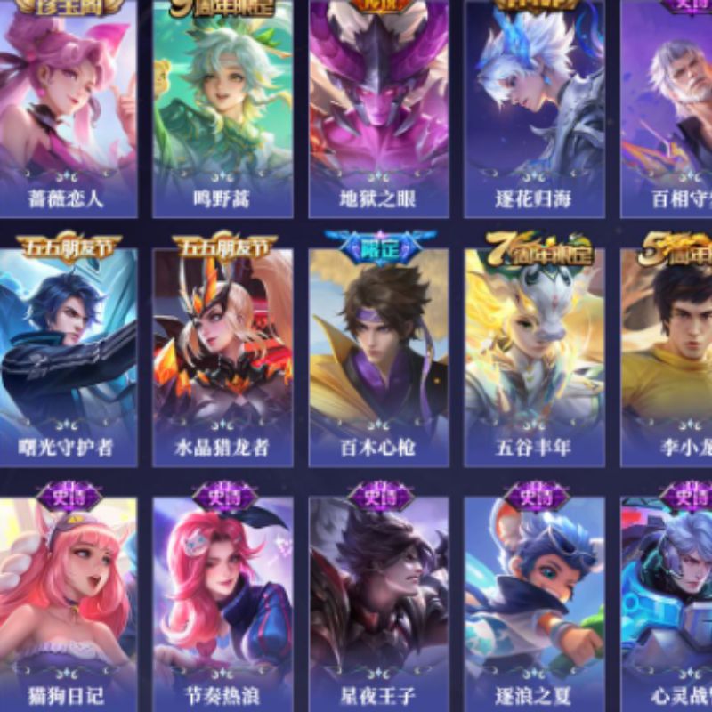 贵族5 传说皮肤3 史诗皮肤38 皮肤数量158