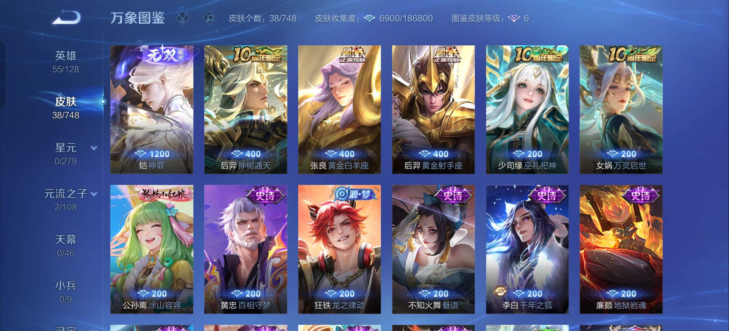 [王者荣耀]V61典藏6传说35史诗145皮肤绝世王者