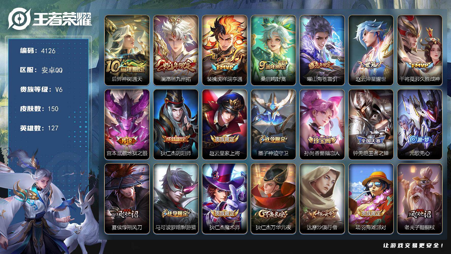 【32】安卓Q-V0-最强王者段位-126英雄-149皮肤-6传说-44史诗