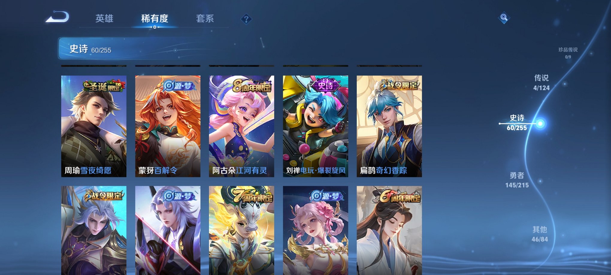 木兰典藏/愿照司空震/牛年吕布皮肤数量219印记总数11V6
