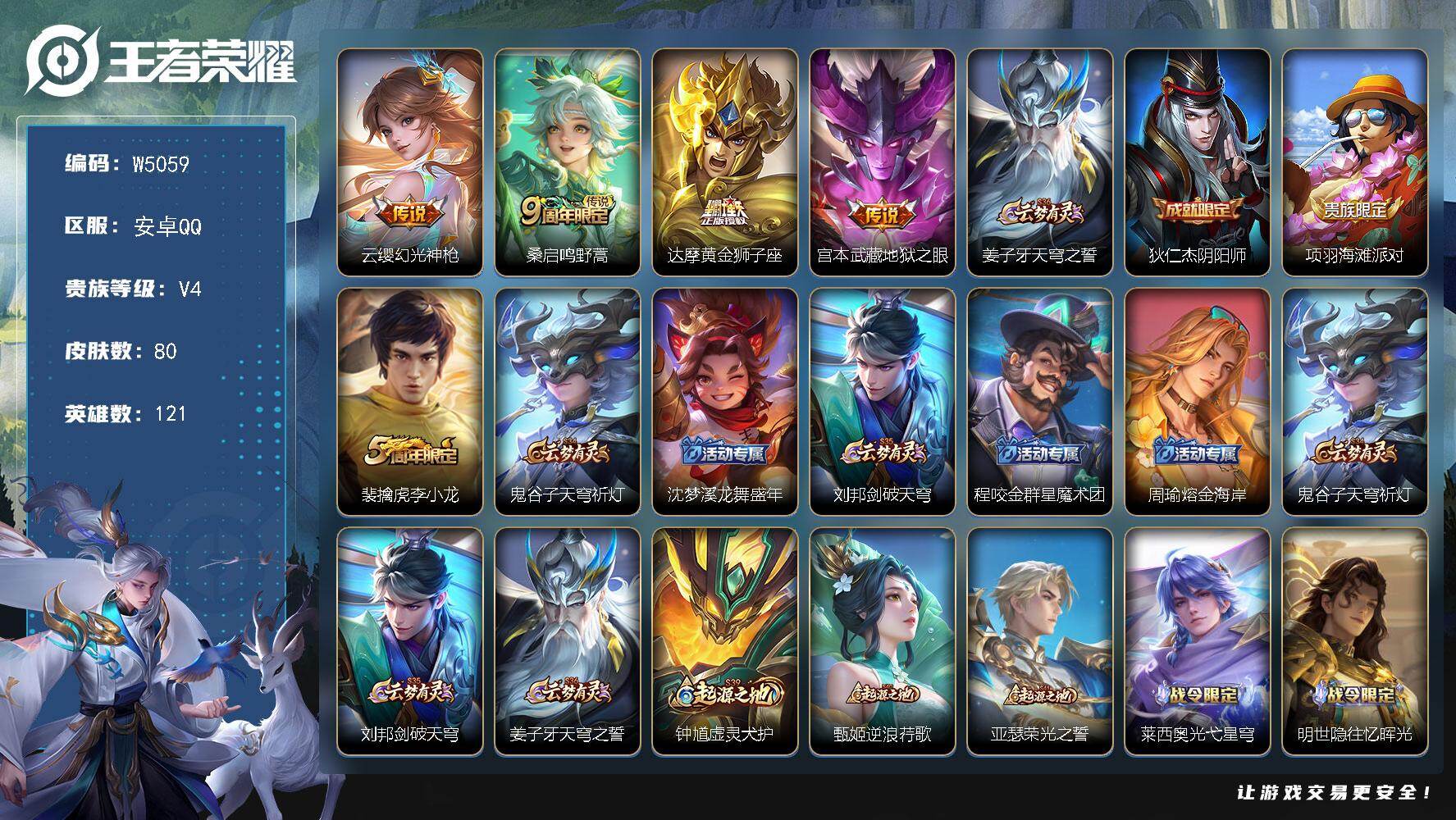 【W5059】【亮点:1.8K低场次开局号】安卓Q-可二次-贵4-121英雄-