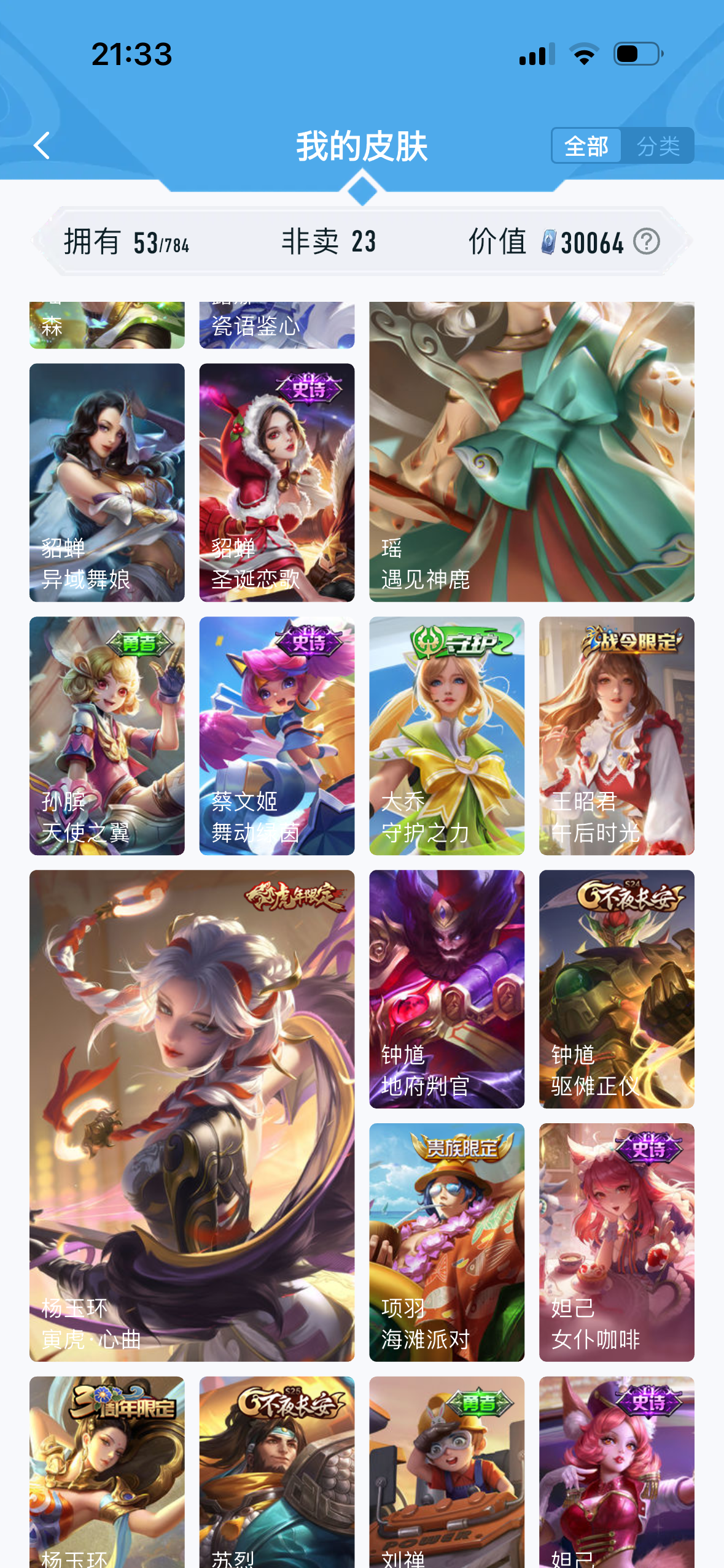 皮肤11 英雄26 秩序白银 传说2 其他皮肤13