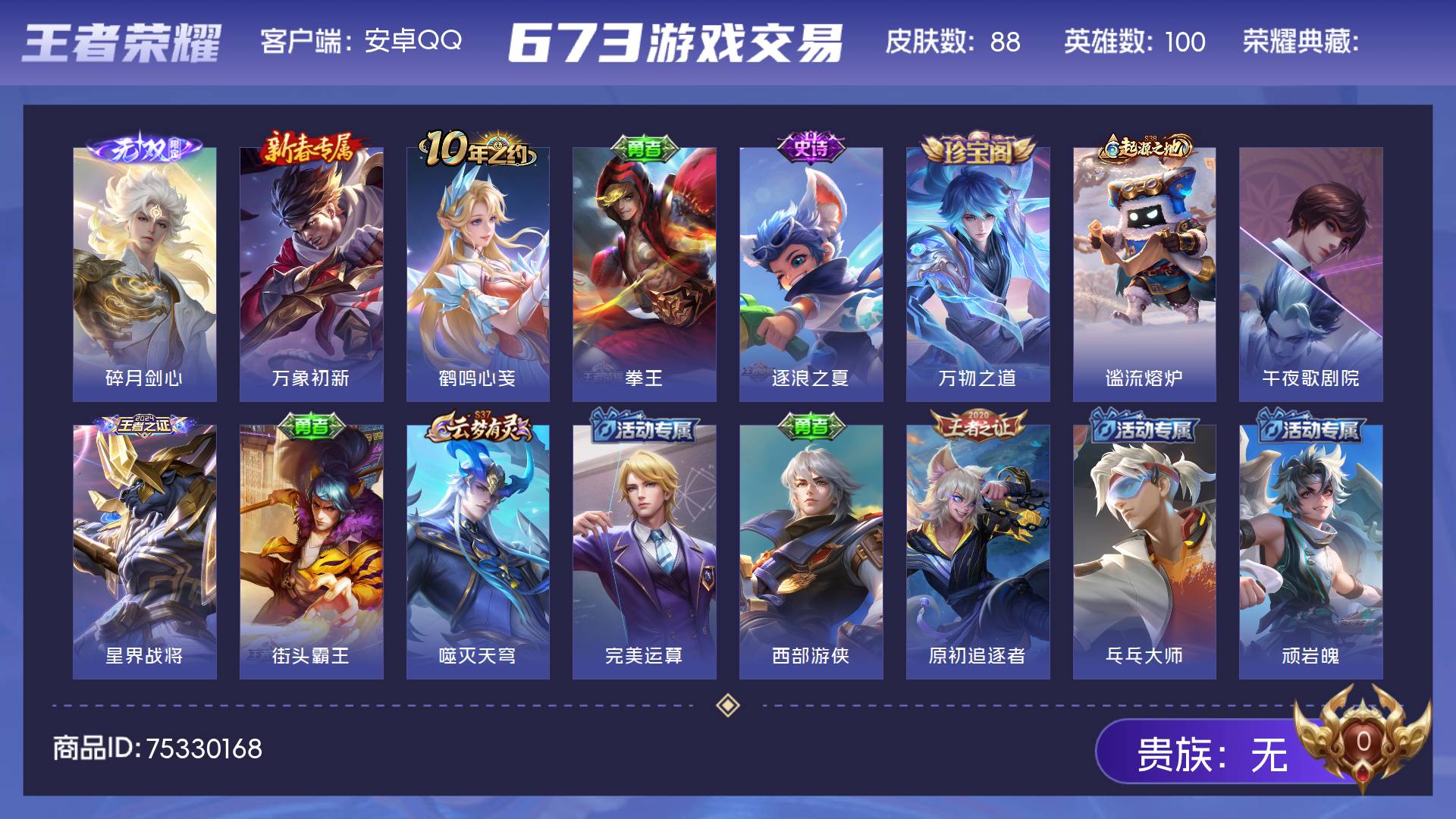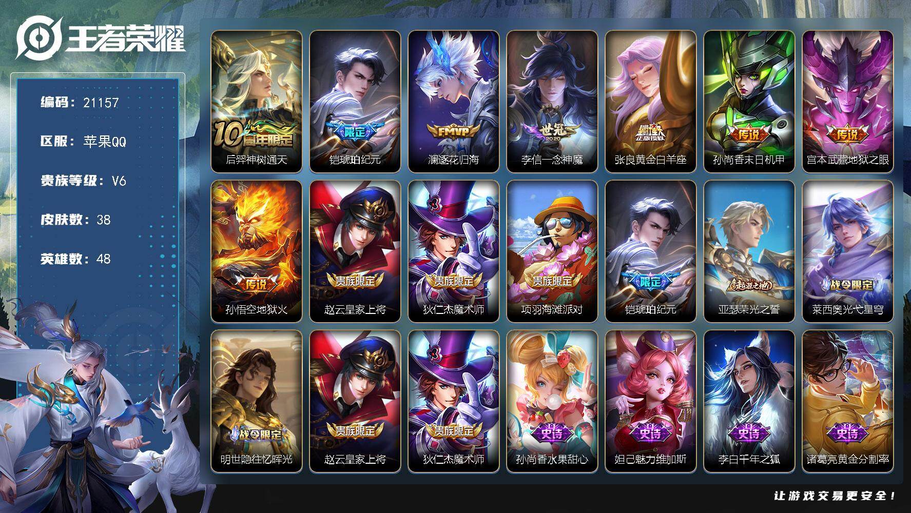 实名: 可修改 贵族等级: V7 英雄数: 128 皮肤数: 138 传说皮: