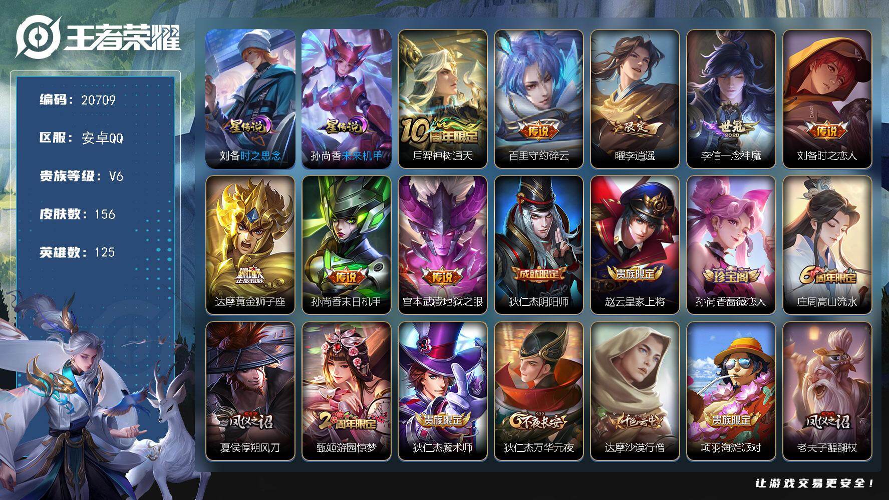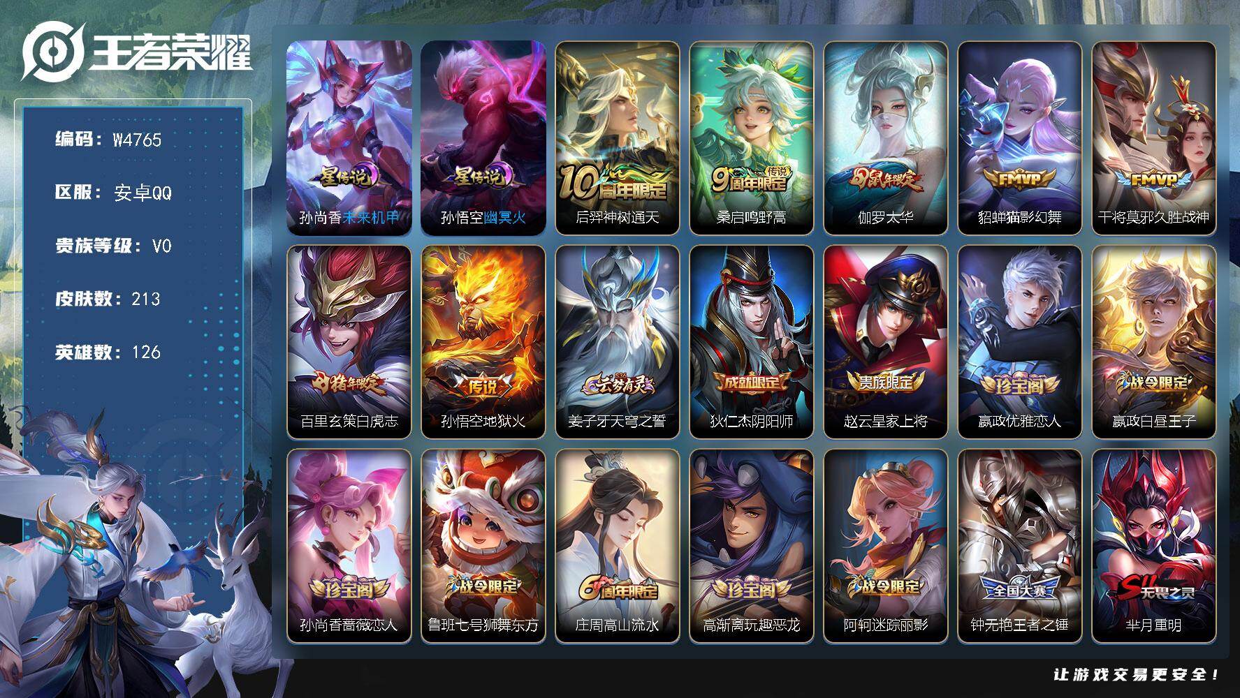 【W4068】安卓Q区-可二次-贵7-125英雄-221皮肤-1典藏-5传说-