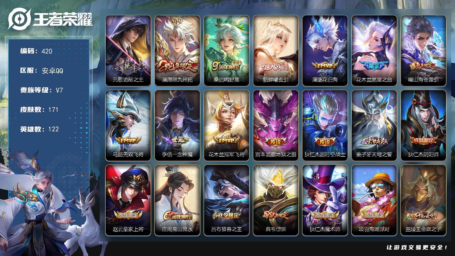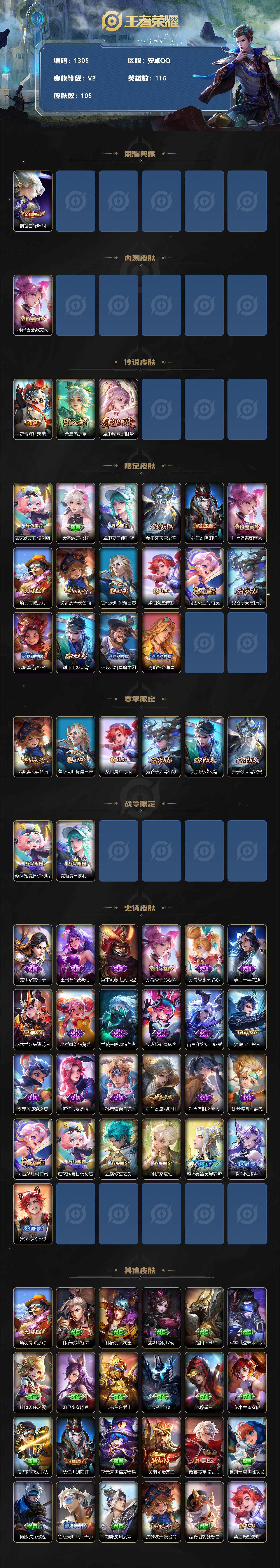 安卓Q-V5-125英雄-155皮肤-1典藏皮肤-6传说-35史诗【英雄全皮