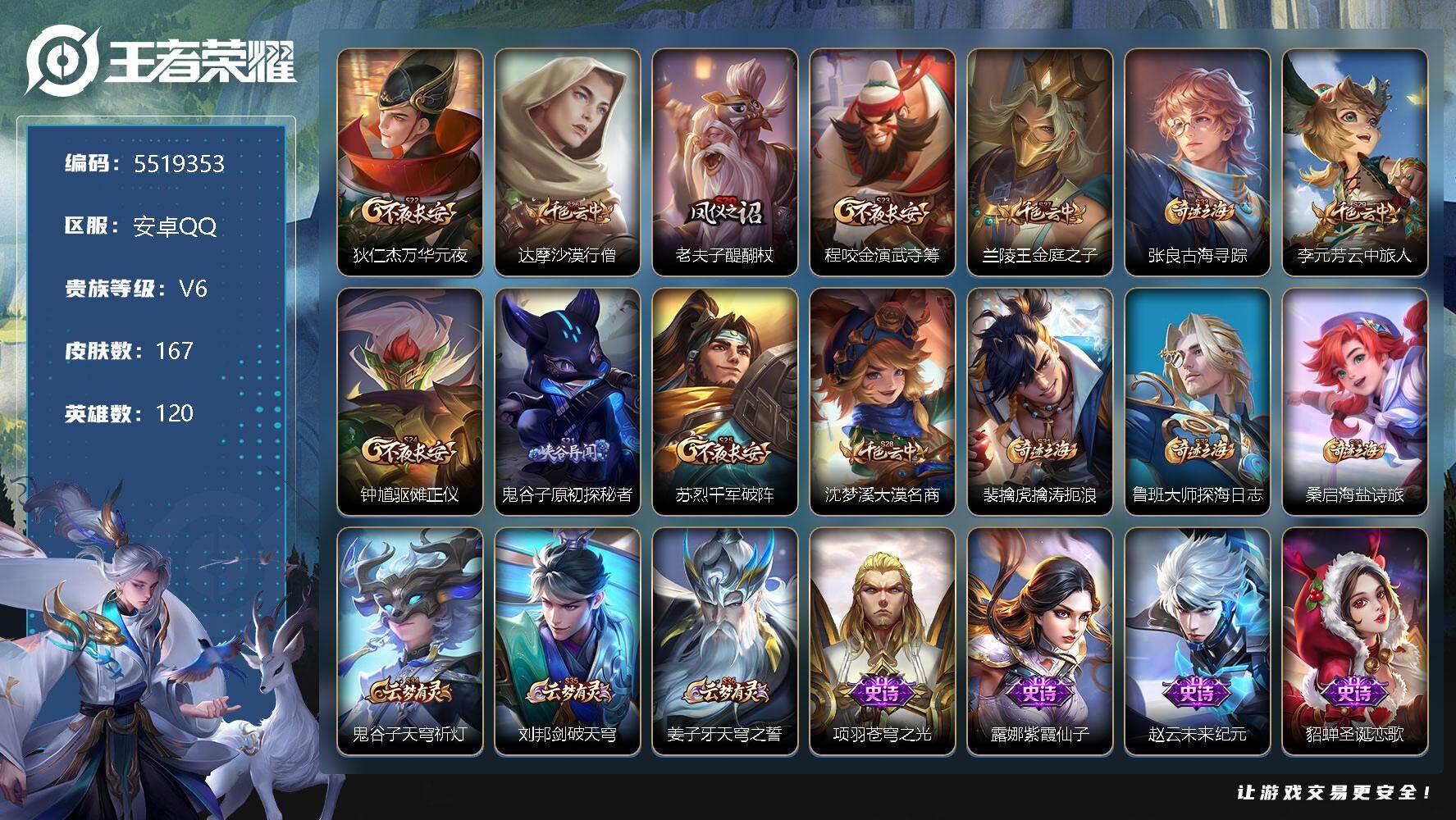 【越千峰 2传说可秒换绑】安卓QQ-70英雄-52皮肤【传
