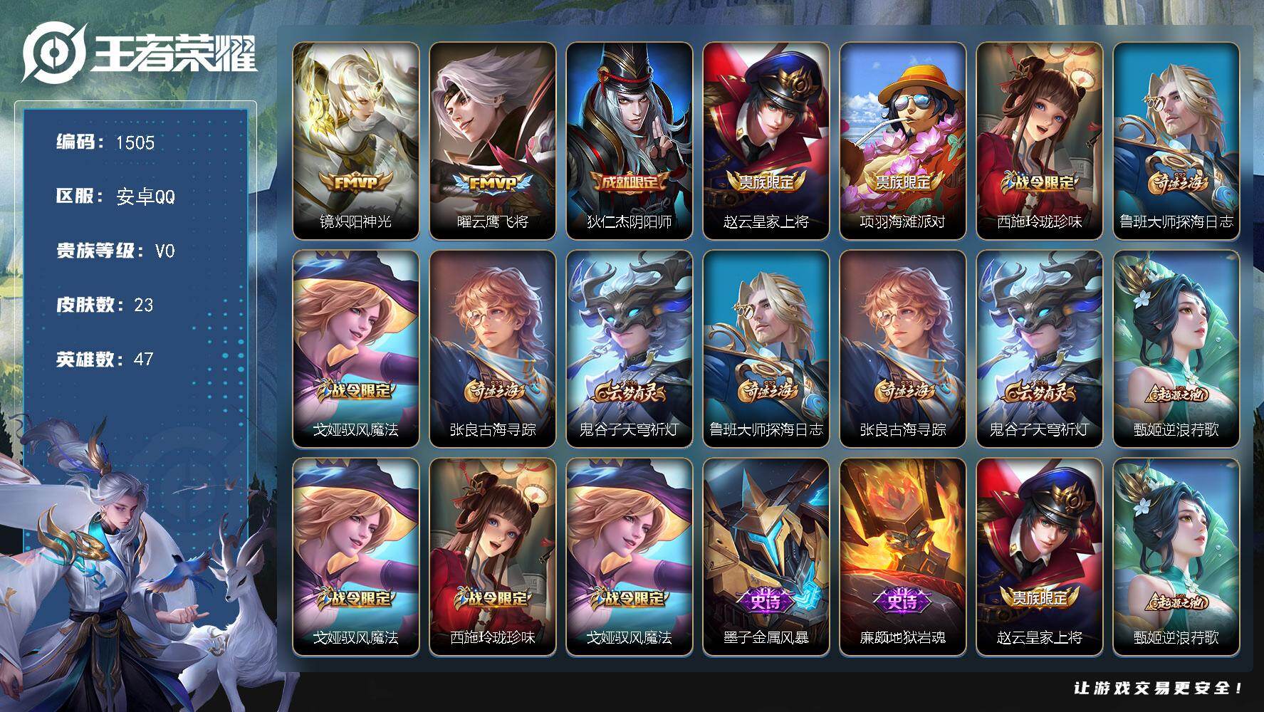 2526574 王者荣耀账号 安卓Q-V0-尊贵铂金II段位-47英雄-23皮