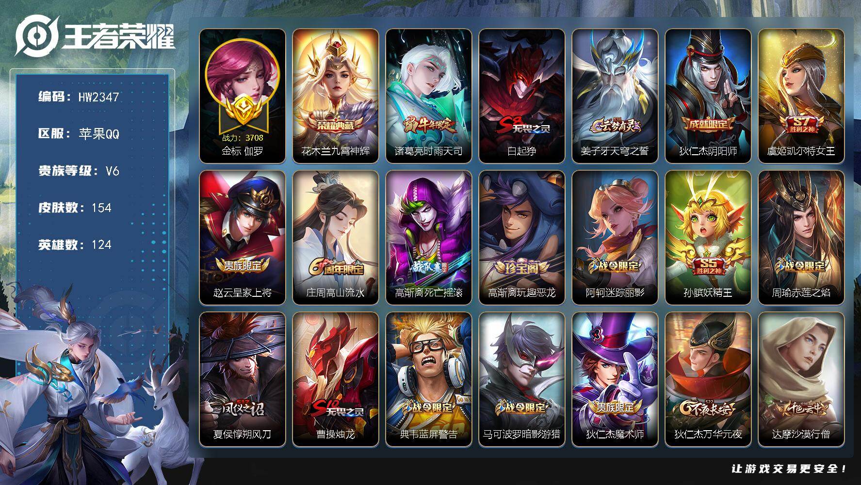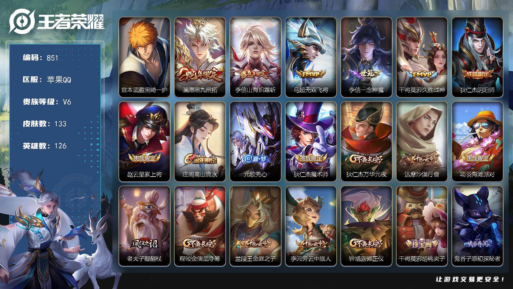 1976955 王者荣耀账号 苹果Q-V6-尊贵铂金III段位-126英雄-1