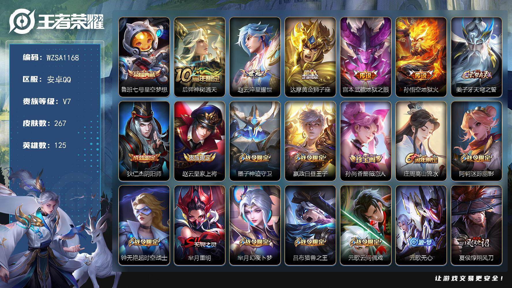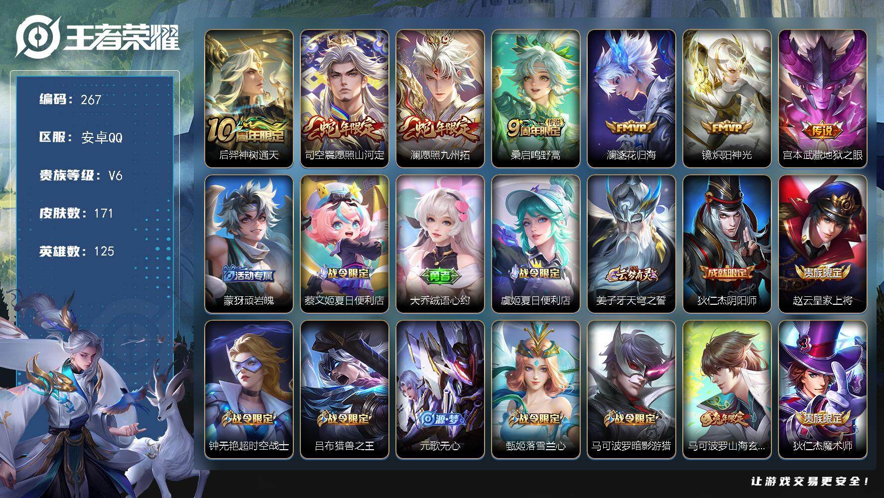 皮肤267 英雄125 无双王者 荣耀典藏1 传说5 其他皮肤104-