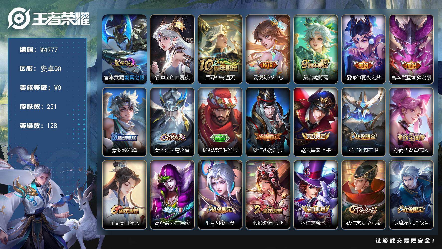 可二次-贵6-128英雄-231皮肤-2星元-5传说-73限定-5按键-贵族积分16752