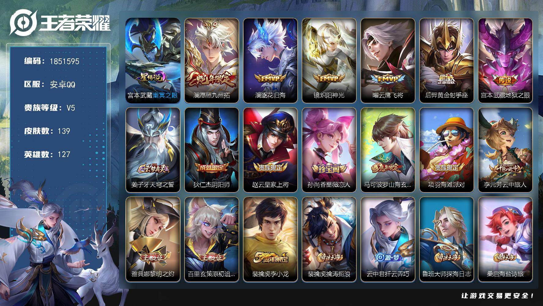 实名: 可修改 贵族等级: V6 英雄数: 125 皮肤数: 139 星传说:
