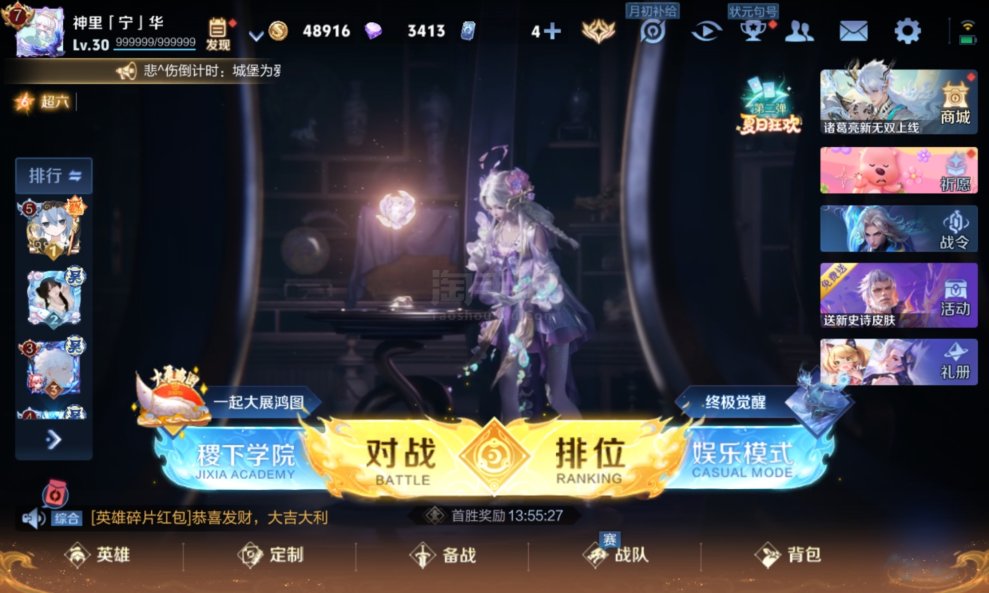W21681 可立即换绑无需挂单养号 铭文满级 传说8 按键3 夺