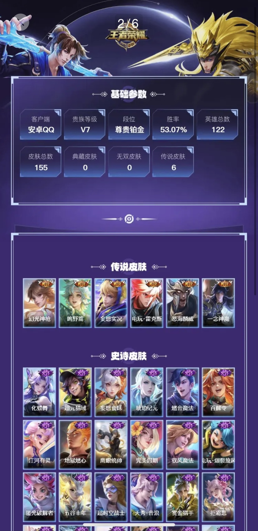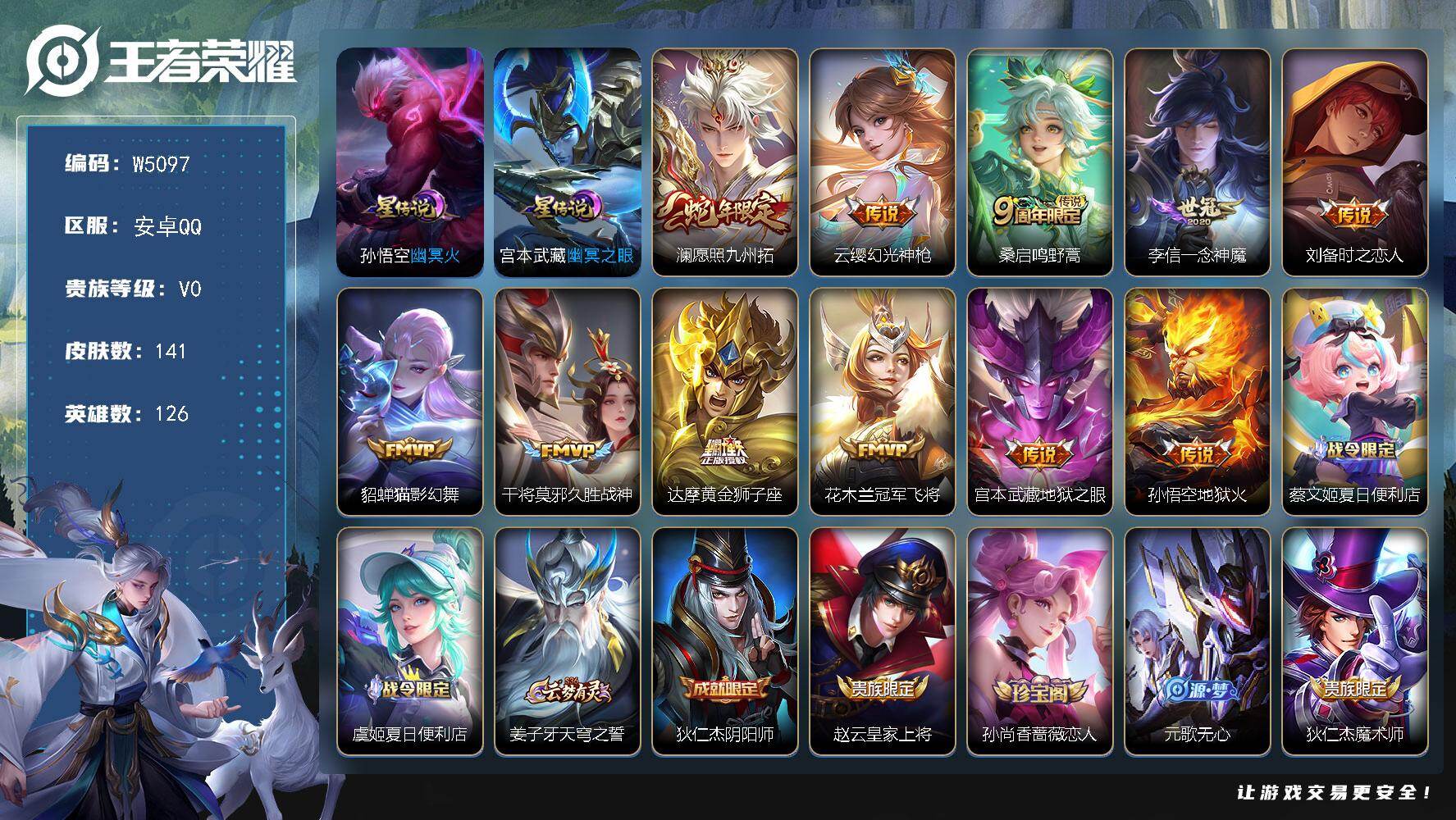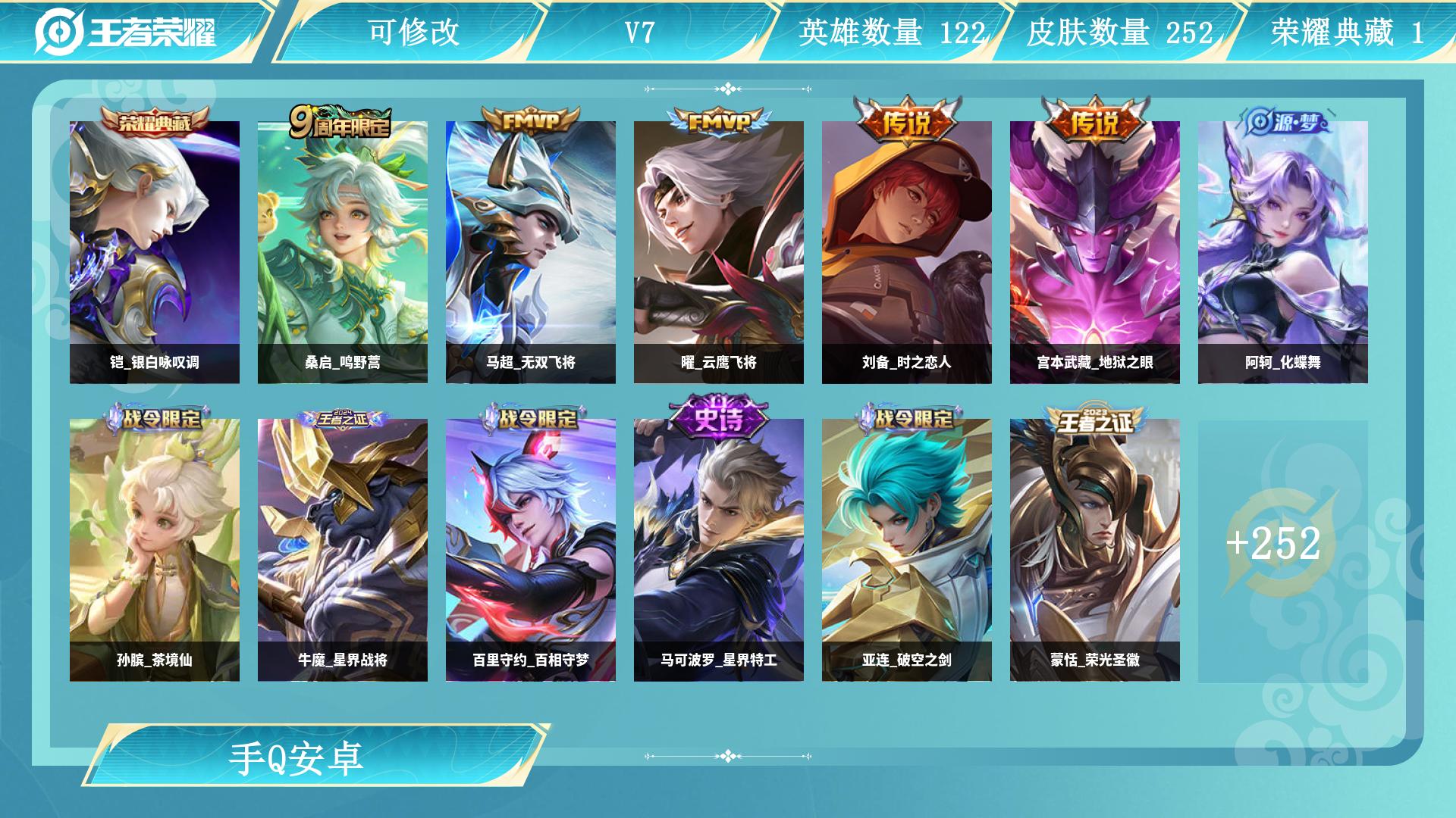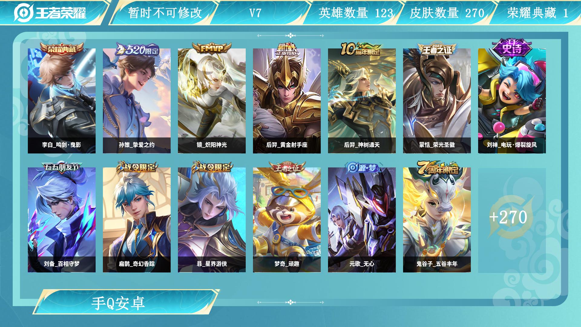安卓Q-V5-至尊星耀III段位-128英雄-175皮肤-1典藏皮肤-5传说-