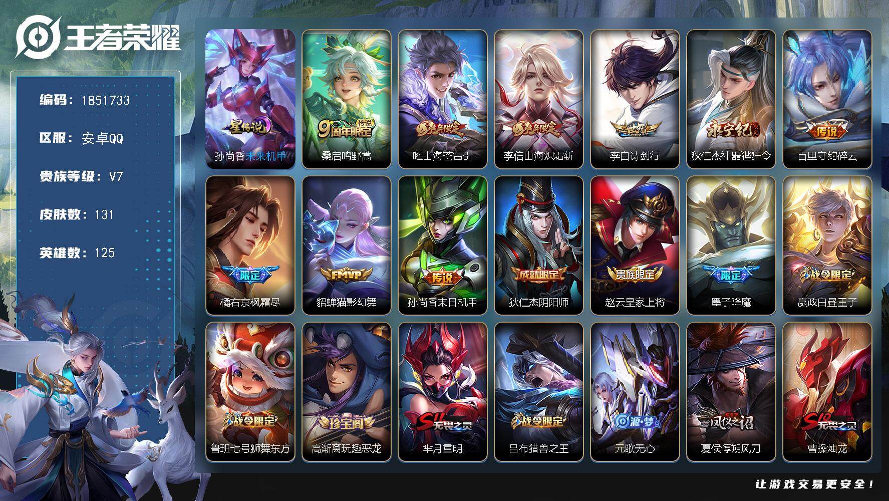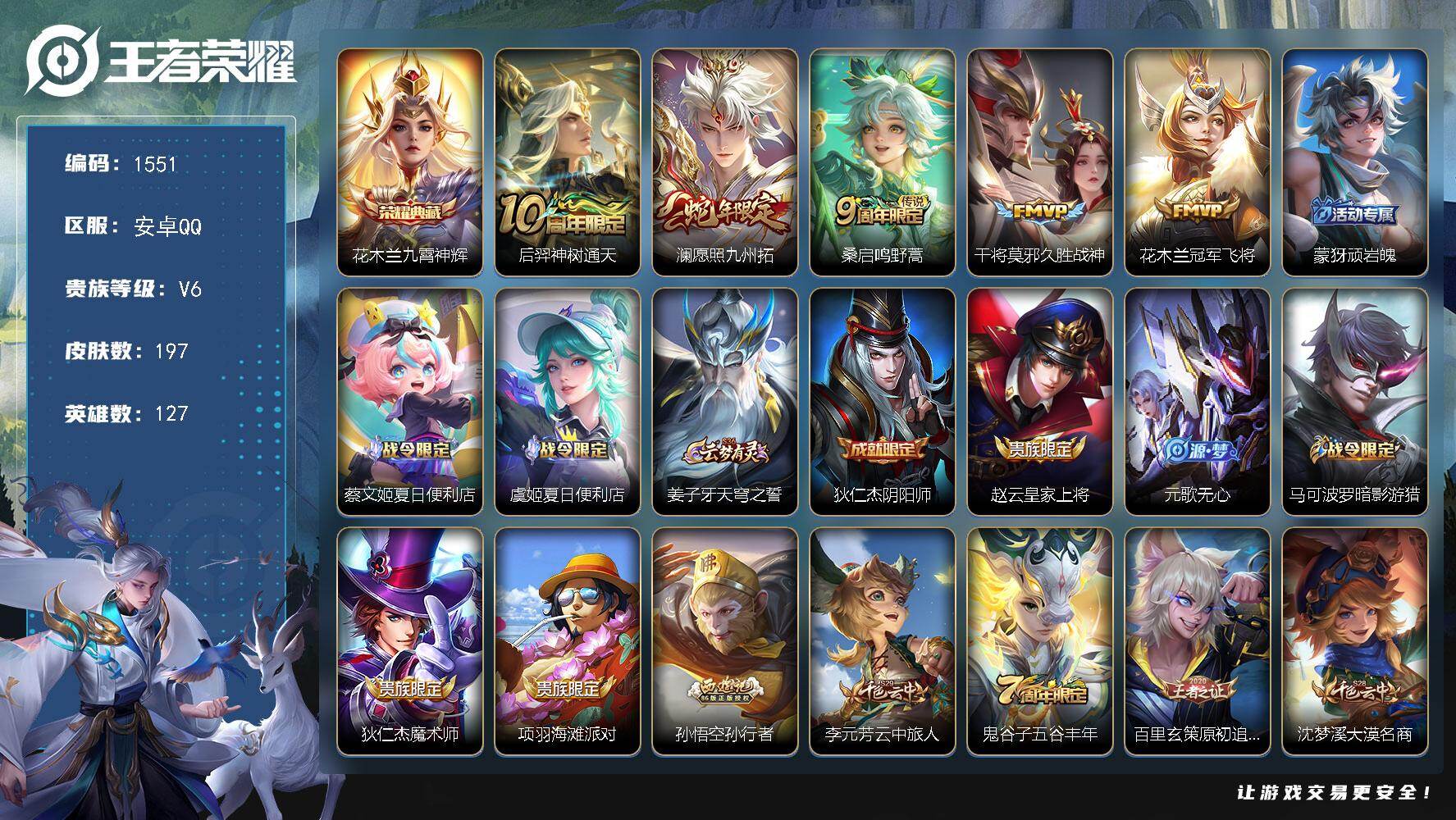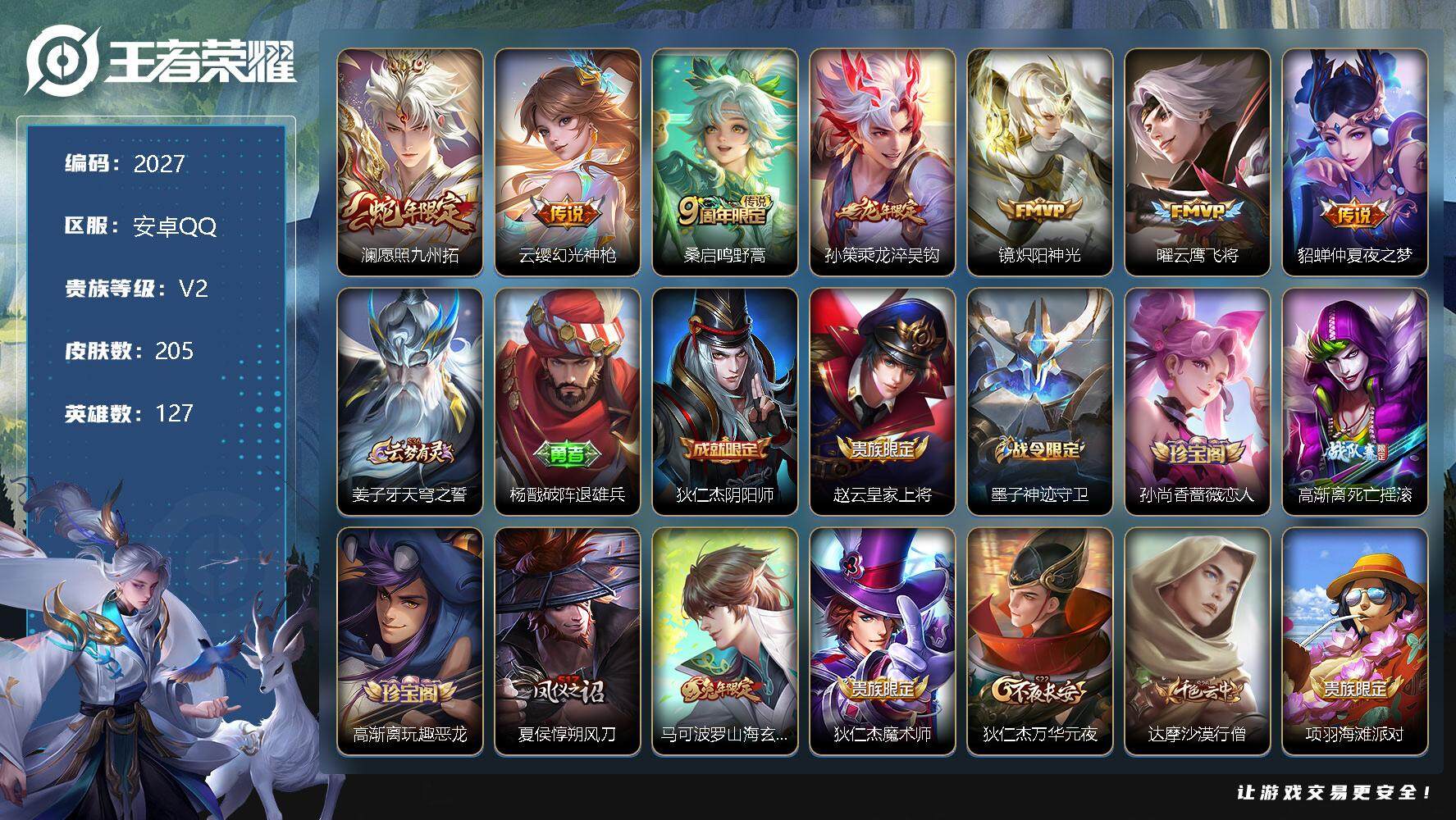 安卓Q-V2-尊贵铂金I段位-127英雄-205皮肤-0典藏-0珍品无双-0无