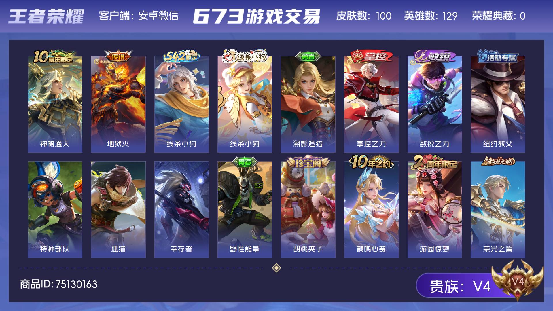 V4 皮肤100 英雄129 永恒钻石 传说2 其他皮肤102