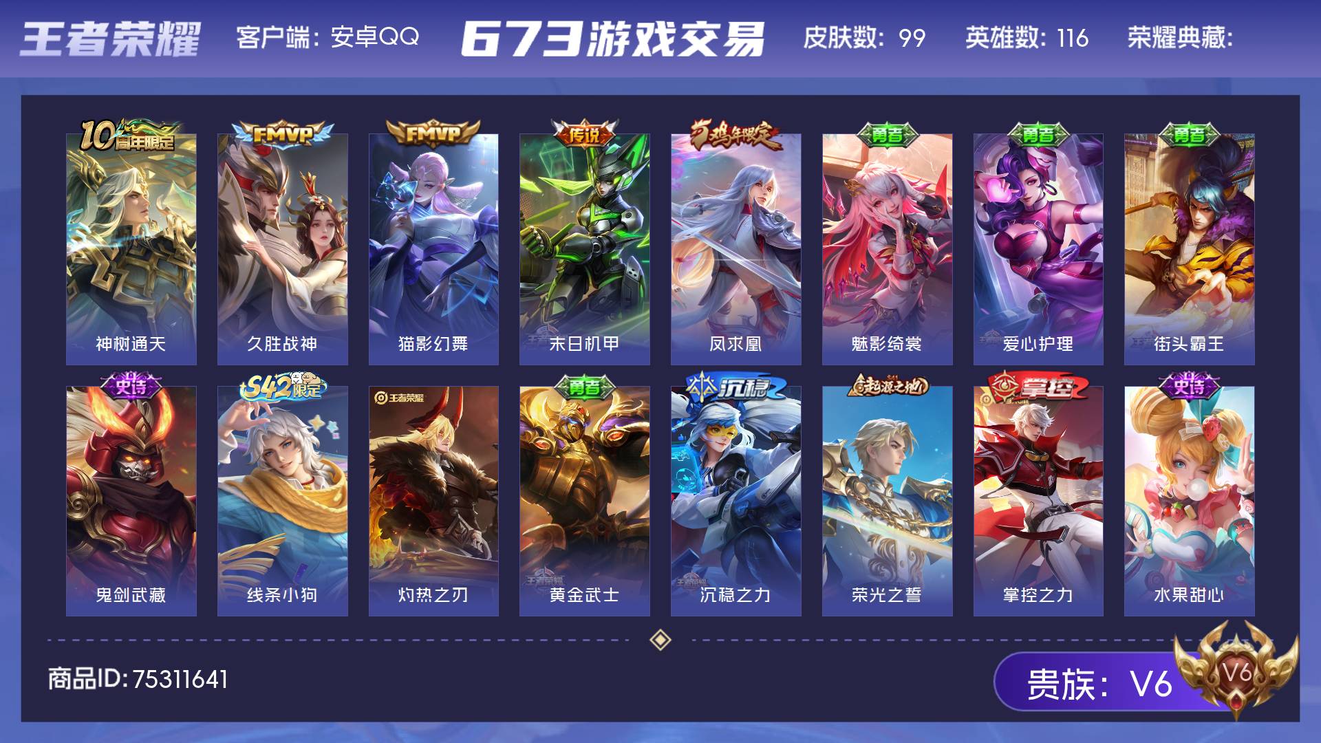 V6 皮肤99 英雄116 永恒钻石 传说5 其他皮肤100