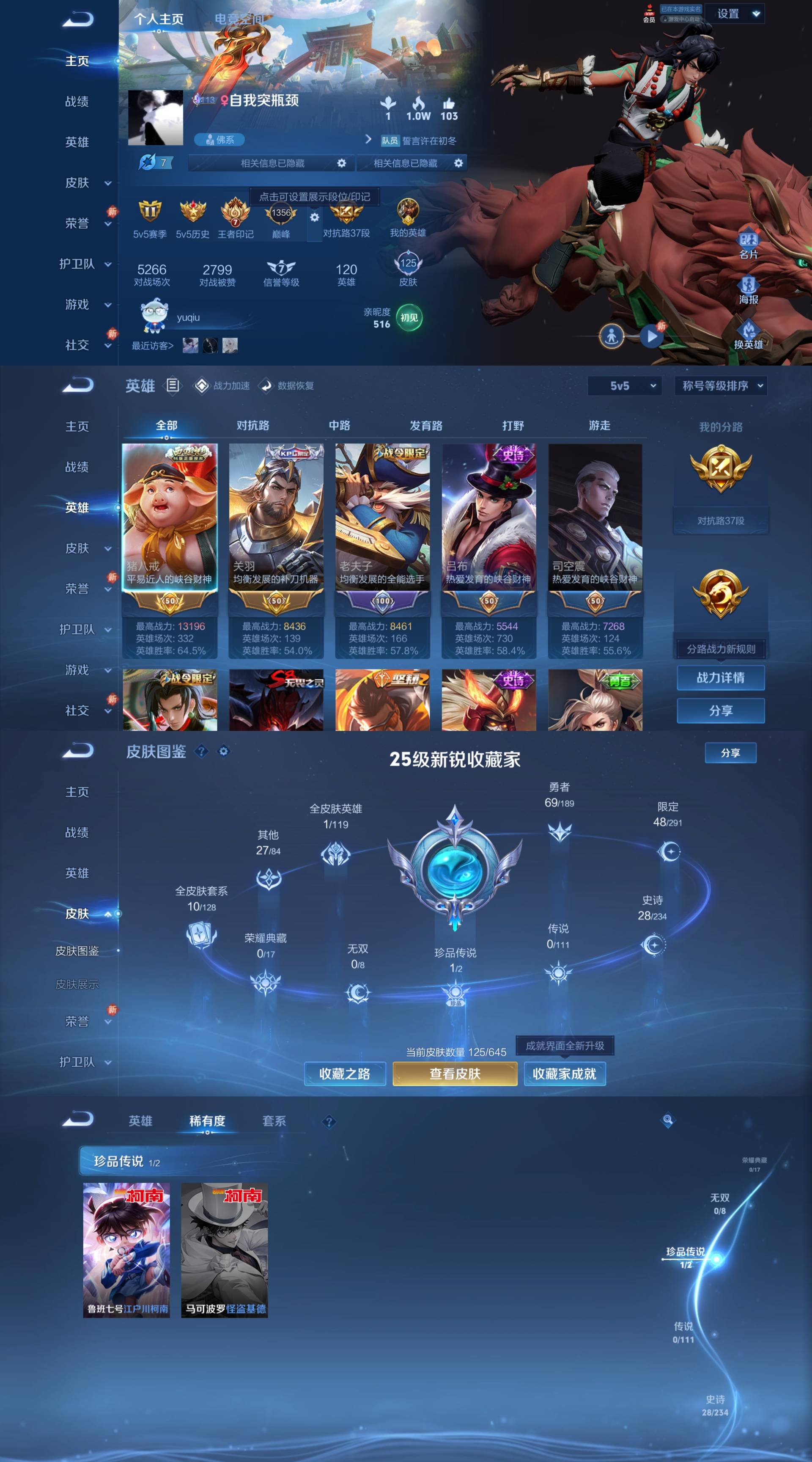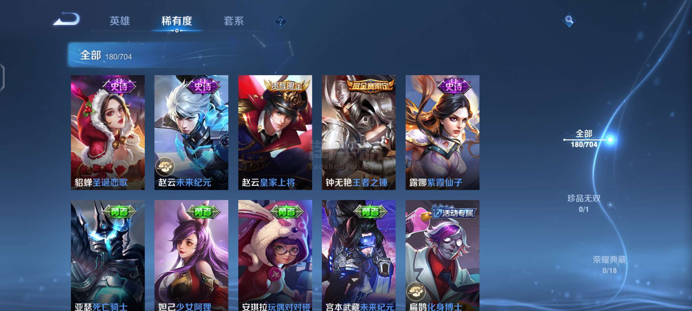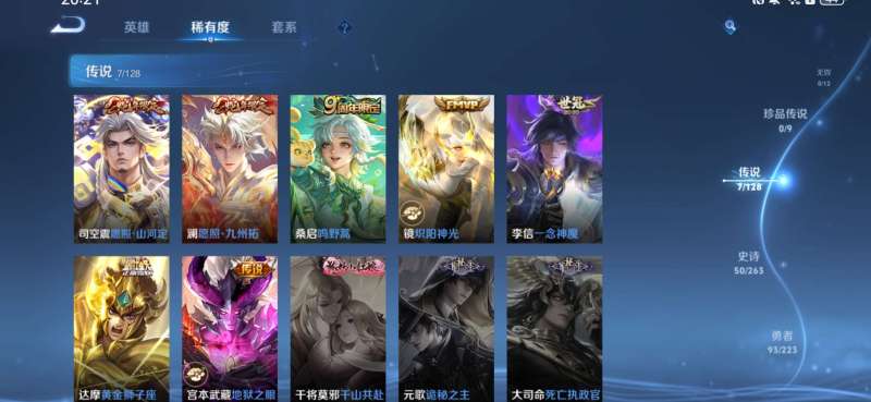 皮肤109 英雄111 非凡王者 珍品传说1 传说6 其他皮肤36-