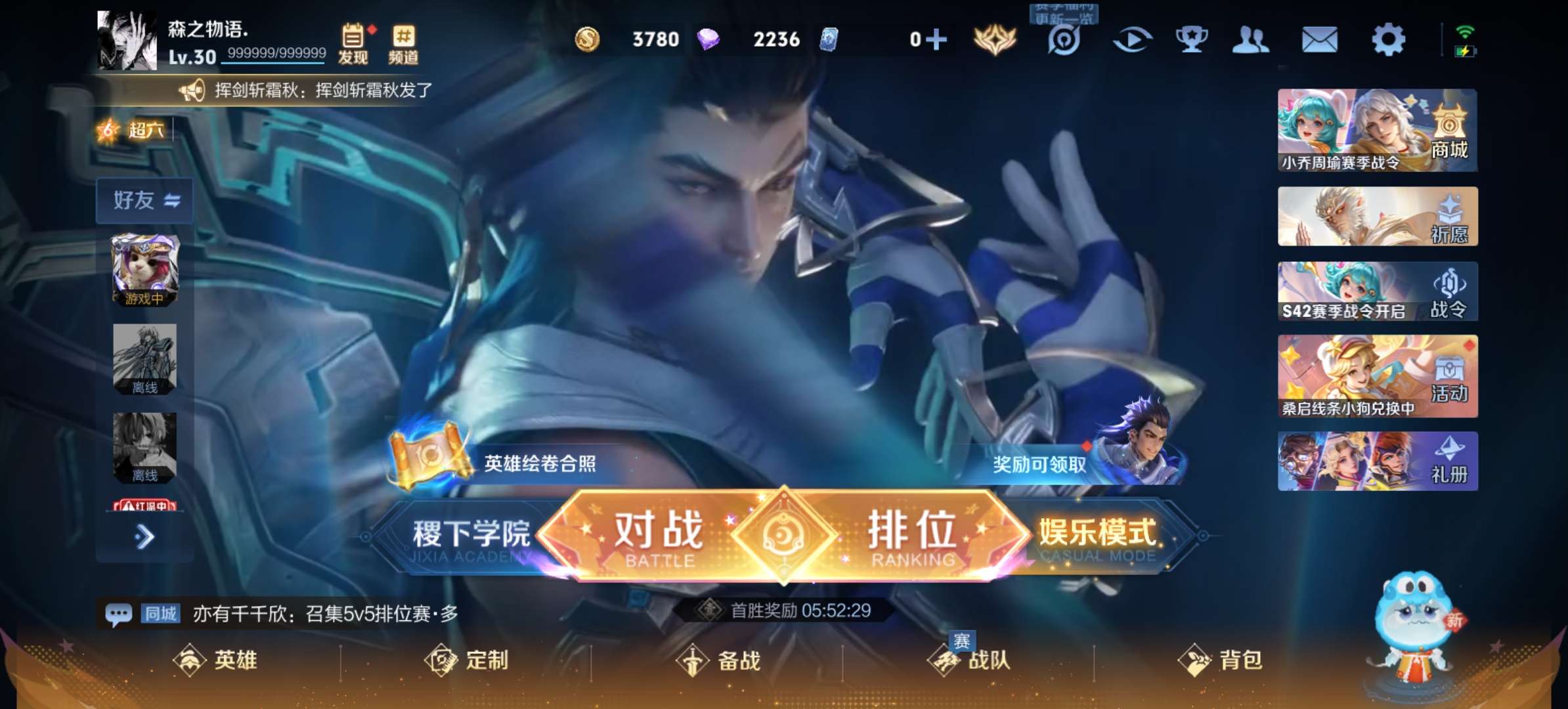 李白无双胜率号需要的可以小刀