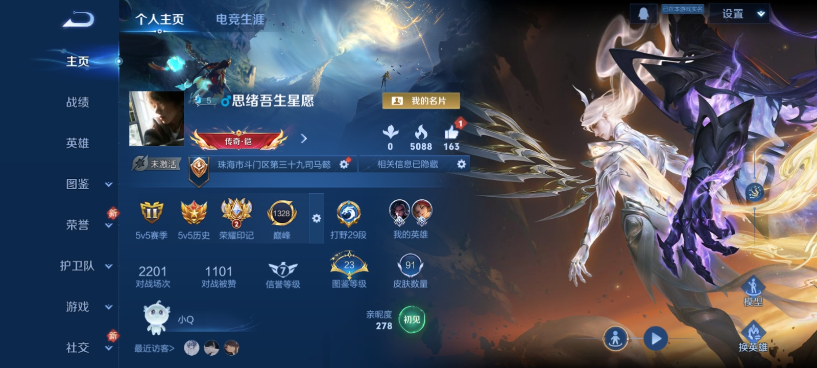 安卓Q-V6-尊贵铂金III段位-126英雄-203皮肤-7传说-47史诗【