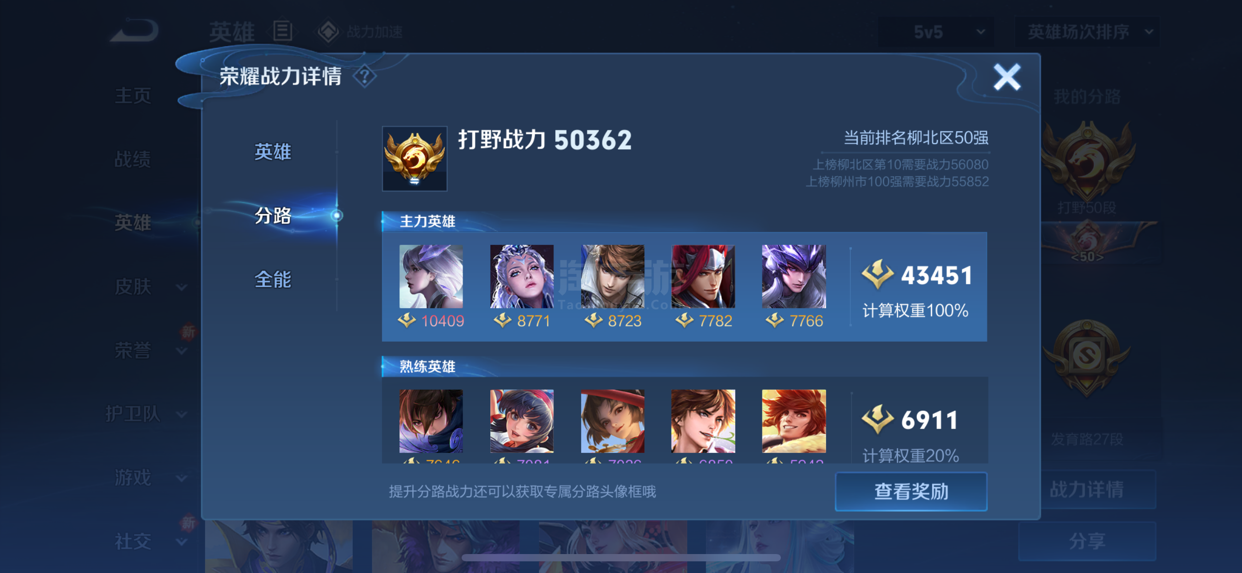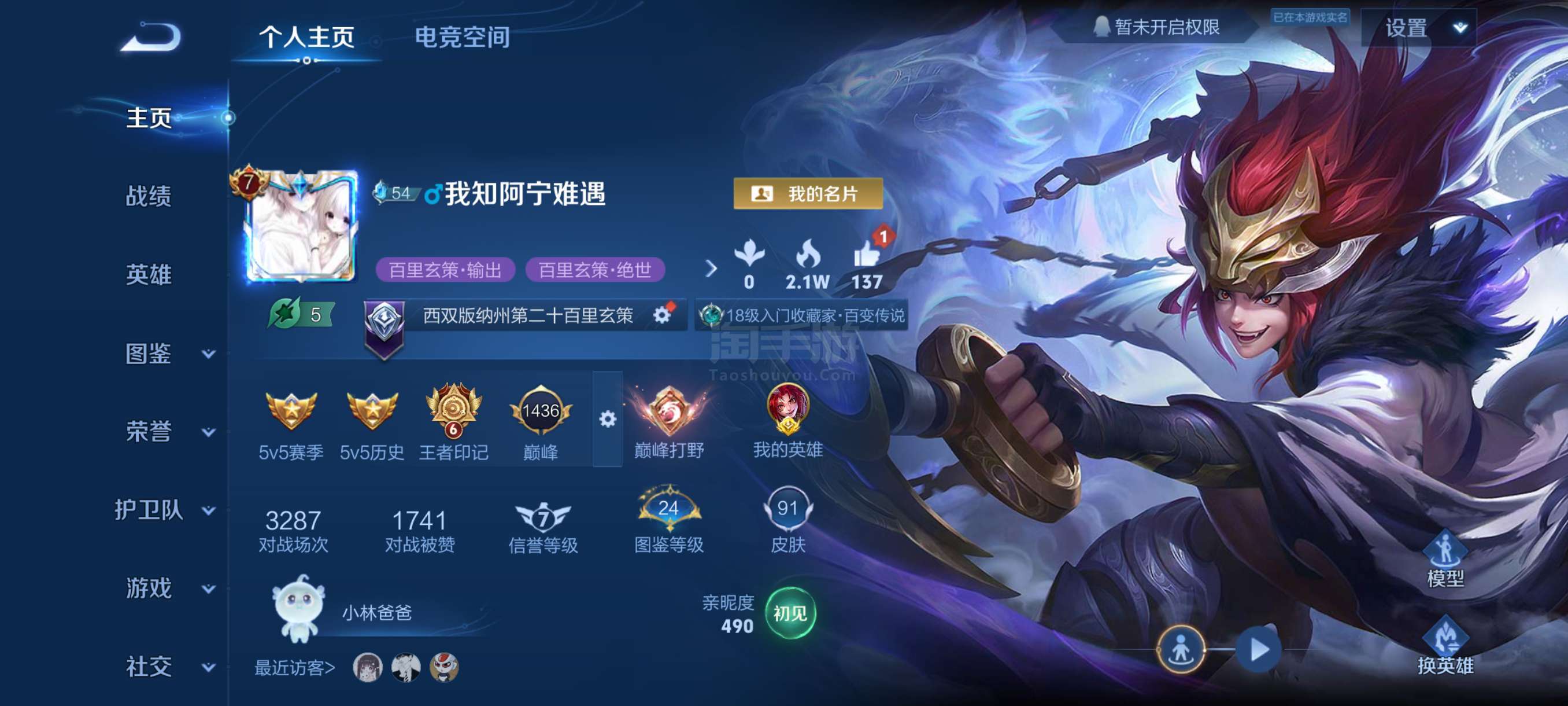 苹果QQ V7 6传说 皮肤数量:239 韩信战力1w