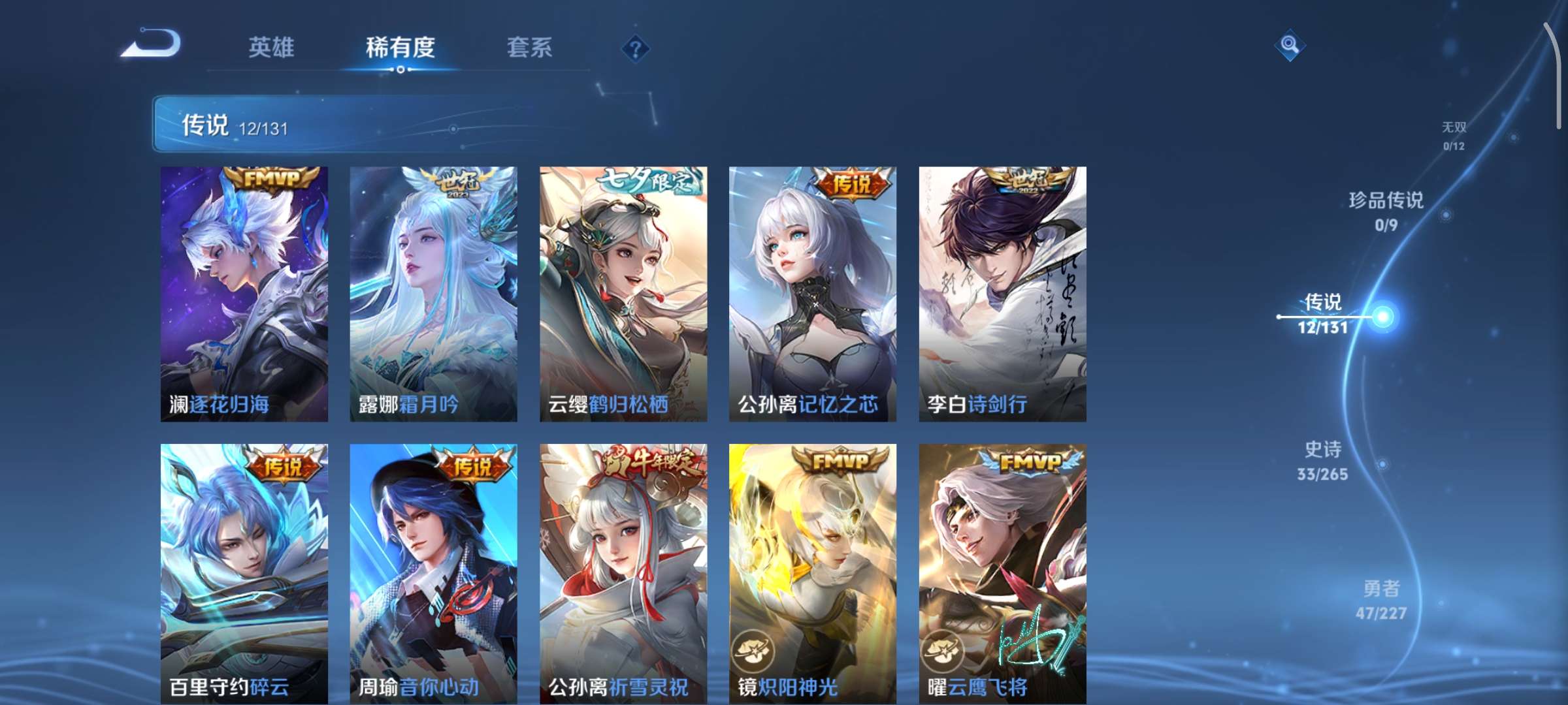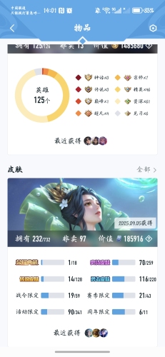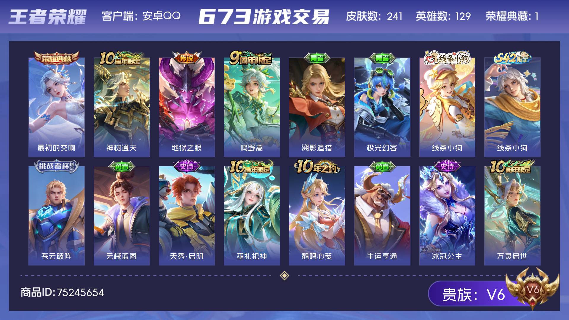 V6 皮肤241 英雄129 至尊星耀 荣耀典藏1 传说3 其他皮肤243