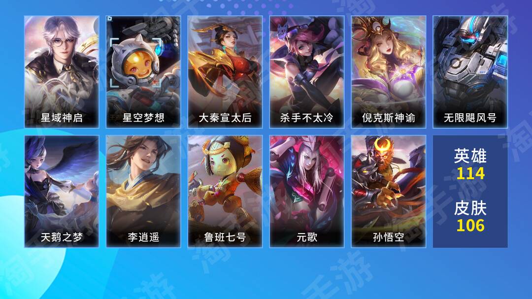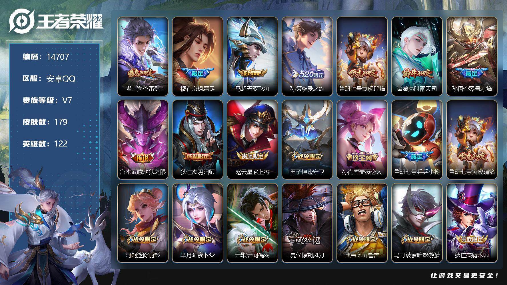 安卓Q-12传说-114皮肤-112英雄-尊贵铂金-可二次,多传说,多限定,可小刀