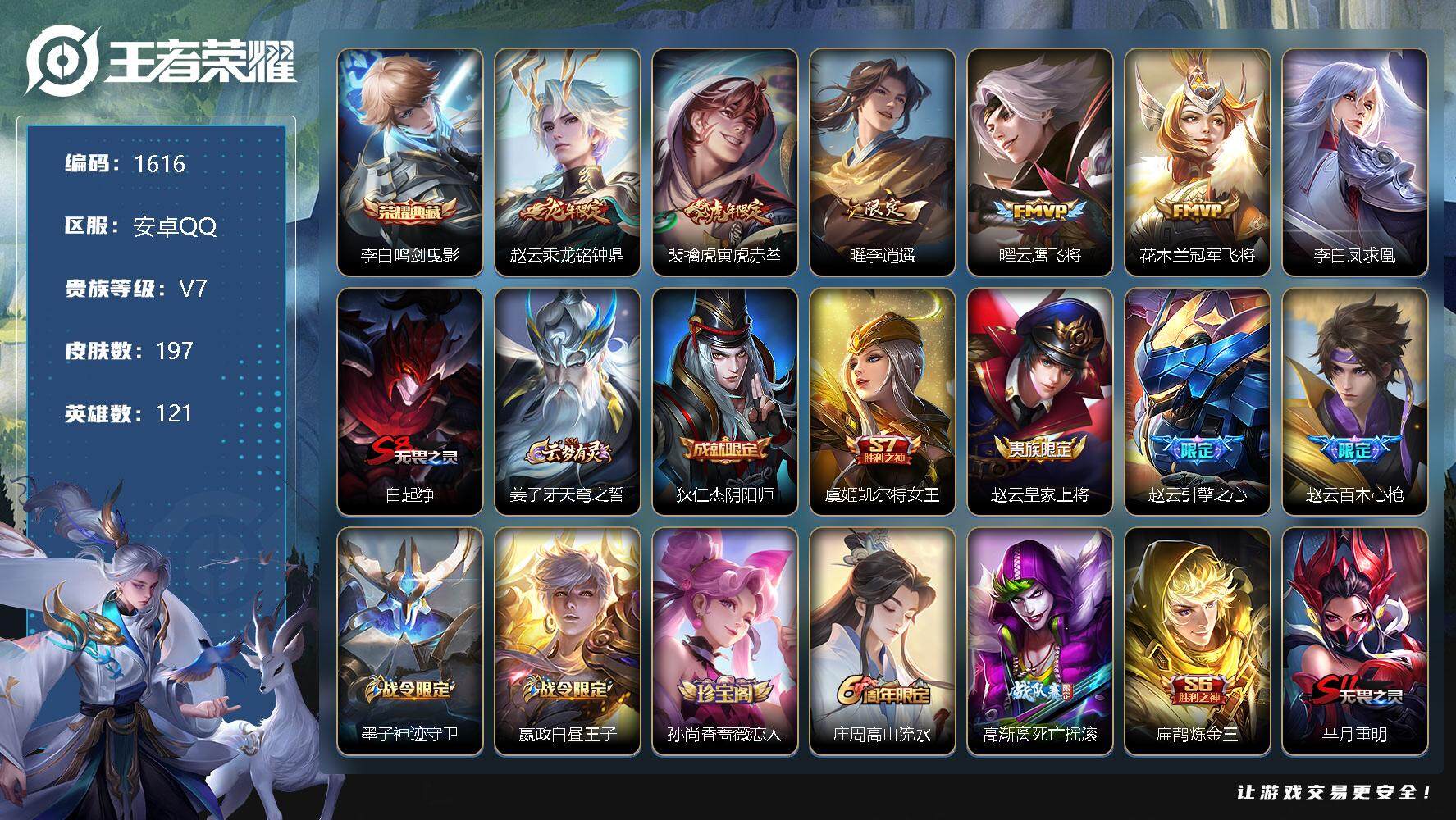 【商品标题】:王者荣耀账号 安卓Q-V7-荣耀黄金I段位-121不玩了,要的来吧。
