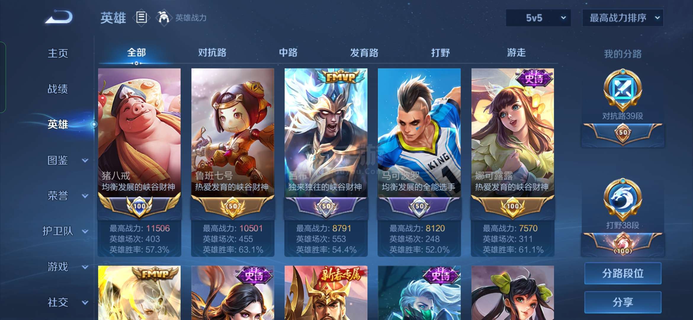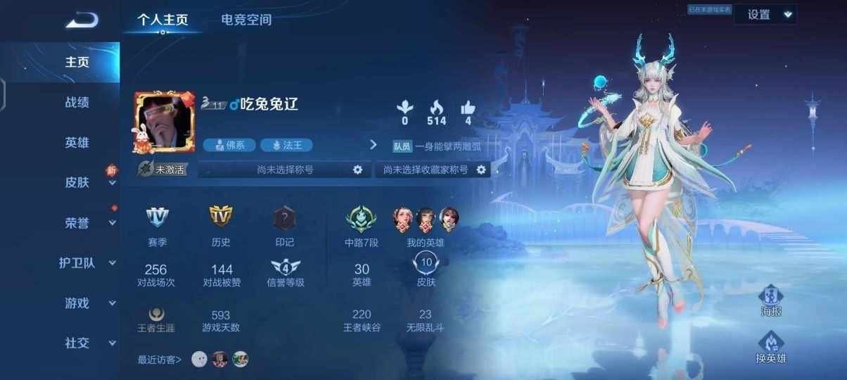 贵族等级: V3 英雄数: 62 皮肤数: 39 无双皮: 神罪 星传说: 幽