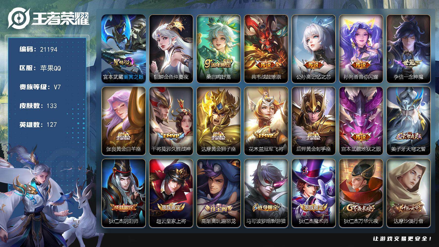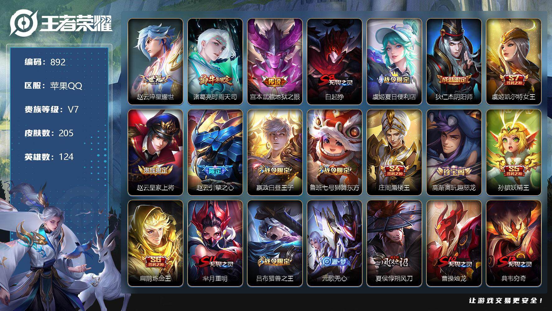 【时雨天司 引擎之心 至尊宝大圣娶亲小号】:苹果Q-V7-最强王者段位-124